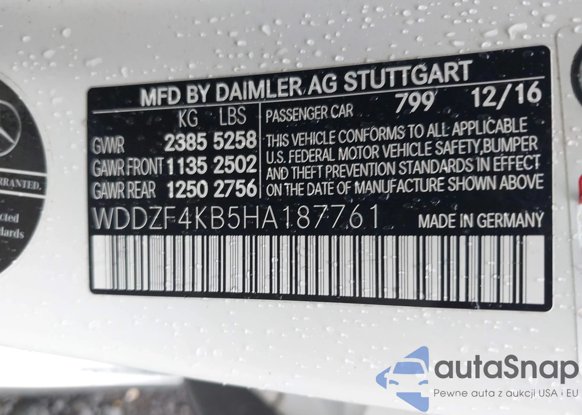 • VIN WDDZF4KB5HA187761