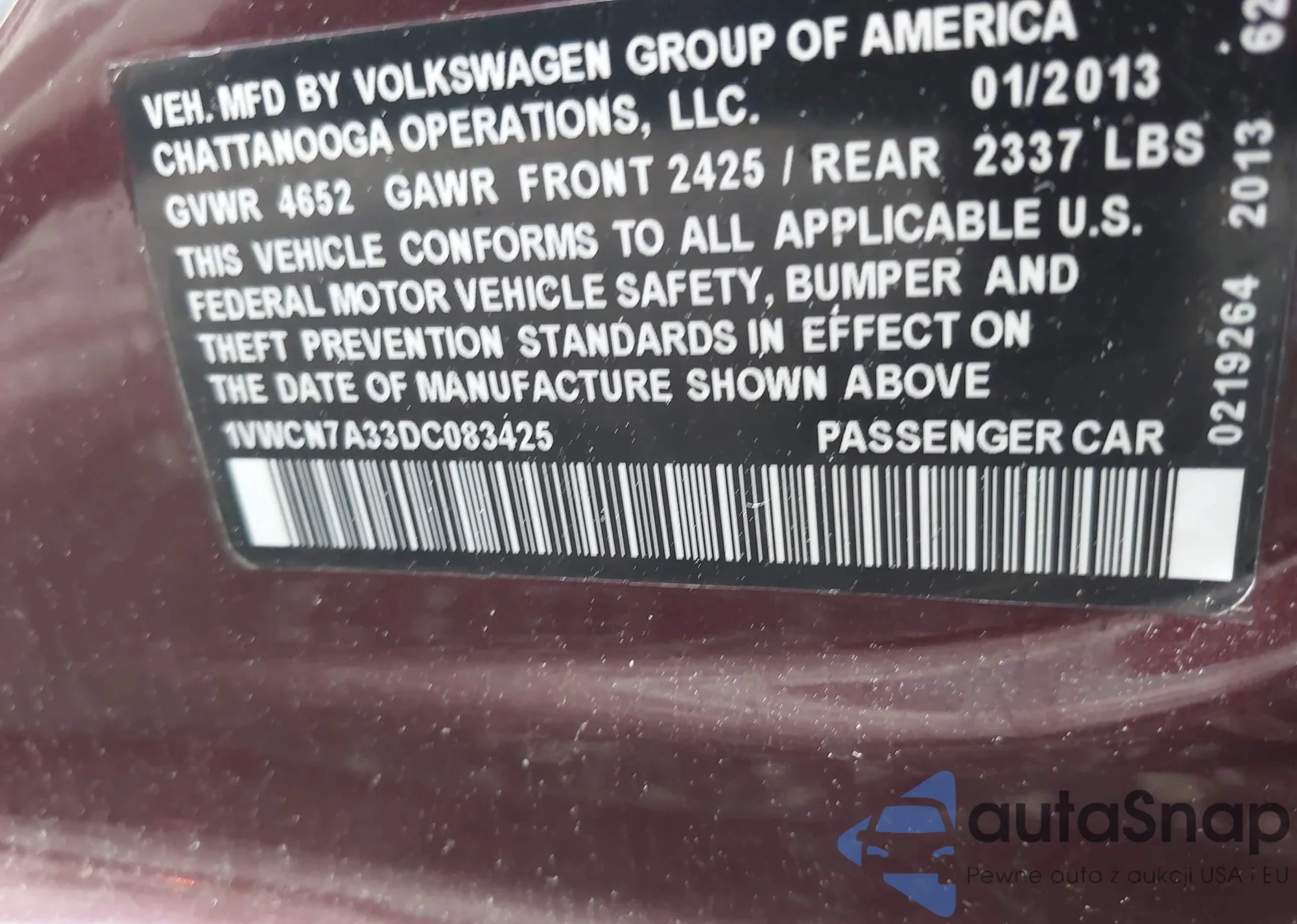 • VIN 1VWCN7A33DC083425