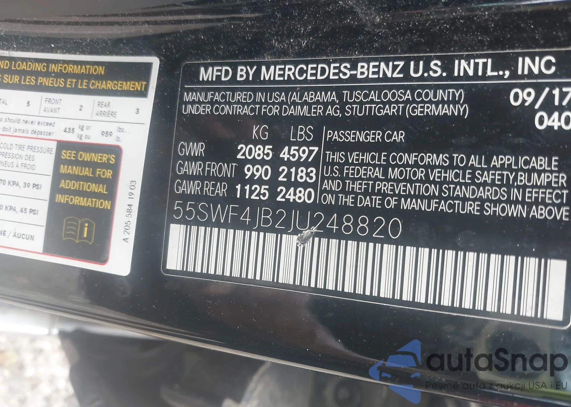 LOT: 42538805 VIN: 55SWF4JB2JU248820