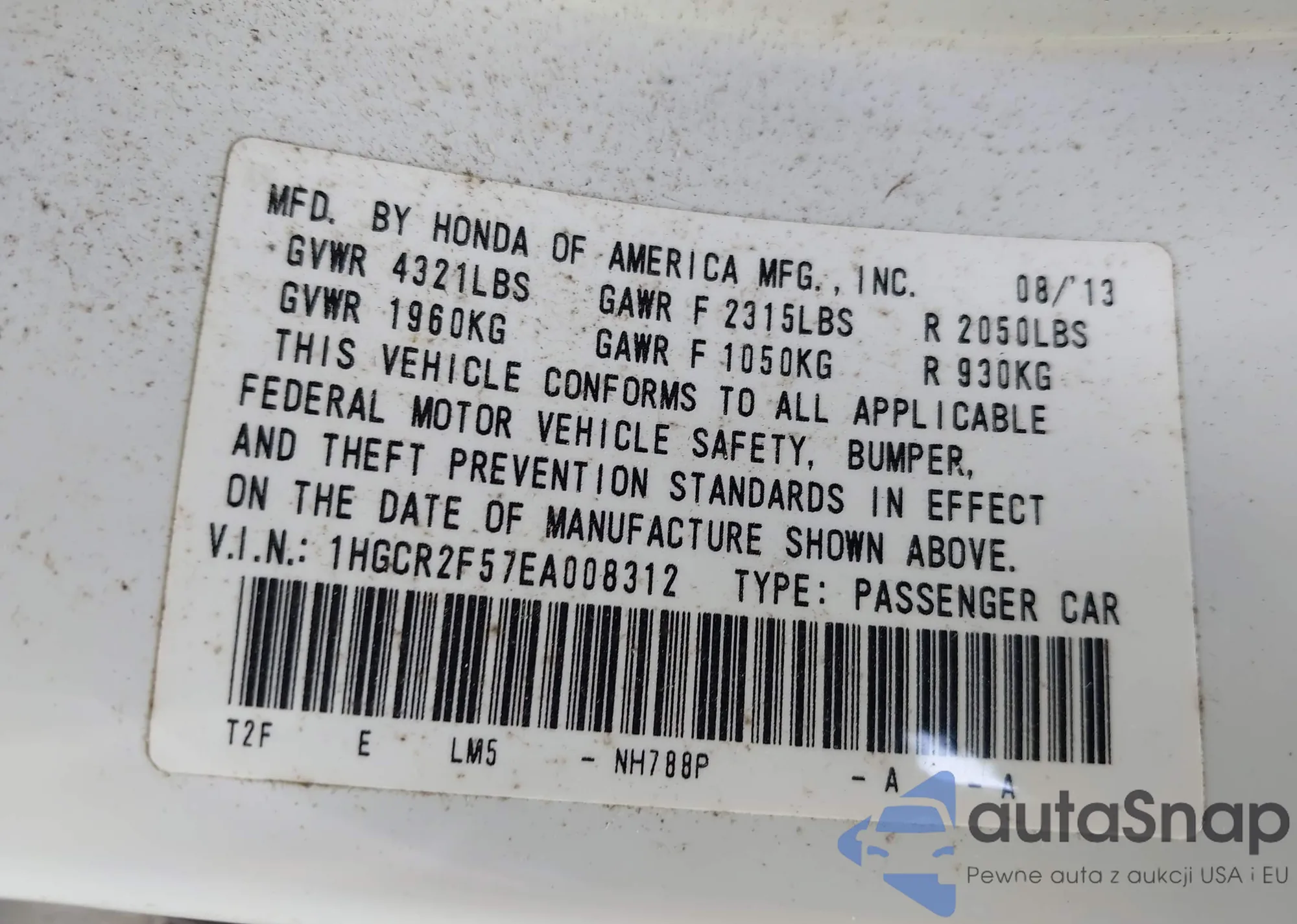 • VIN 5J6RM4H70GL138919