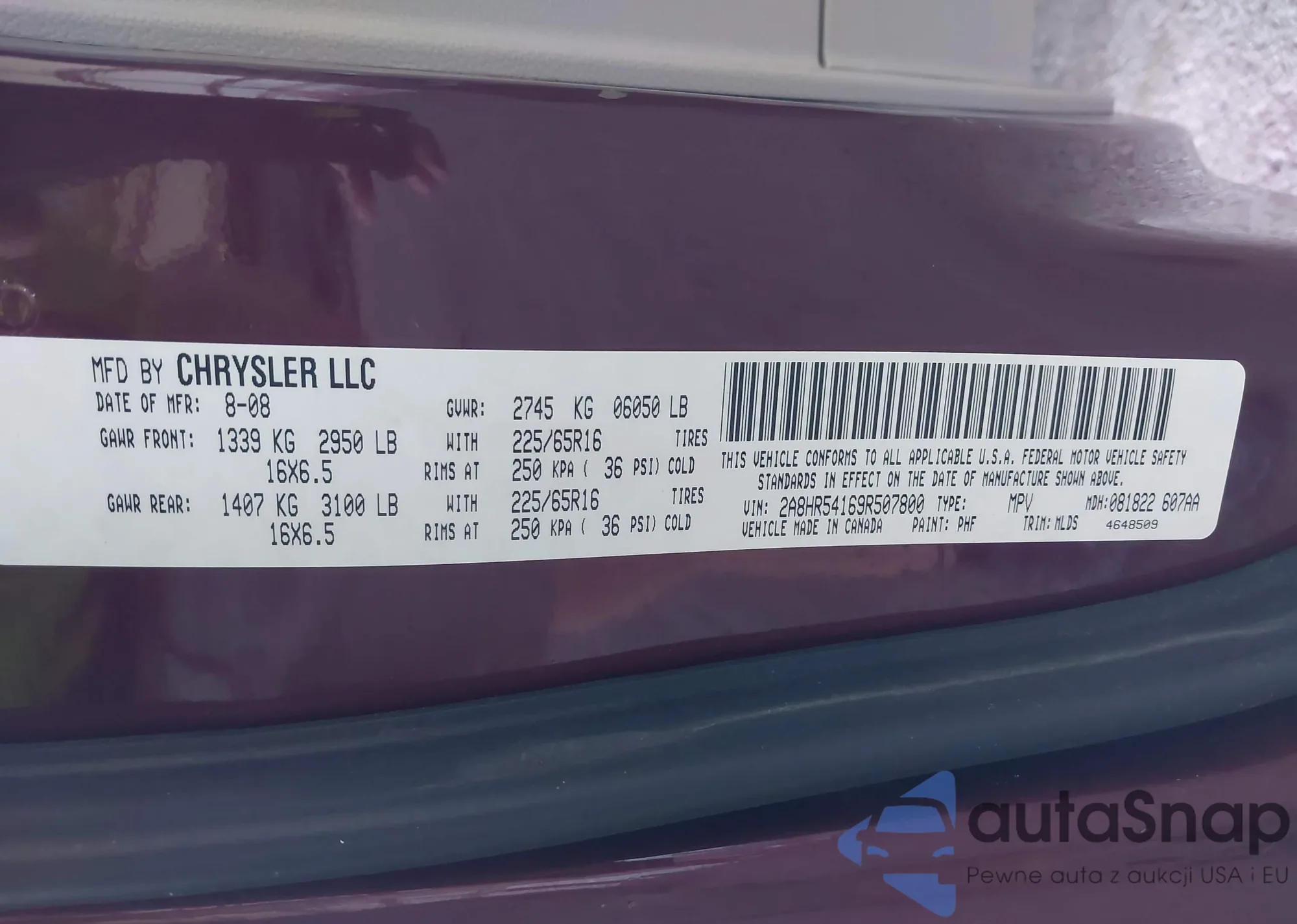 • VIN 2A8HR54169R507800