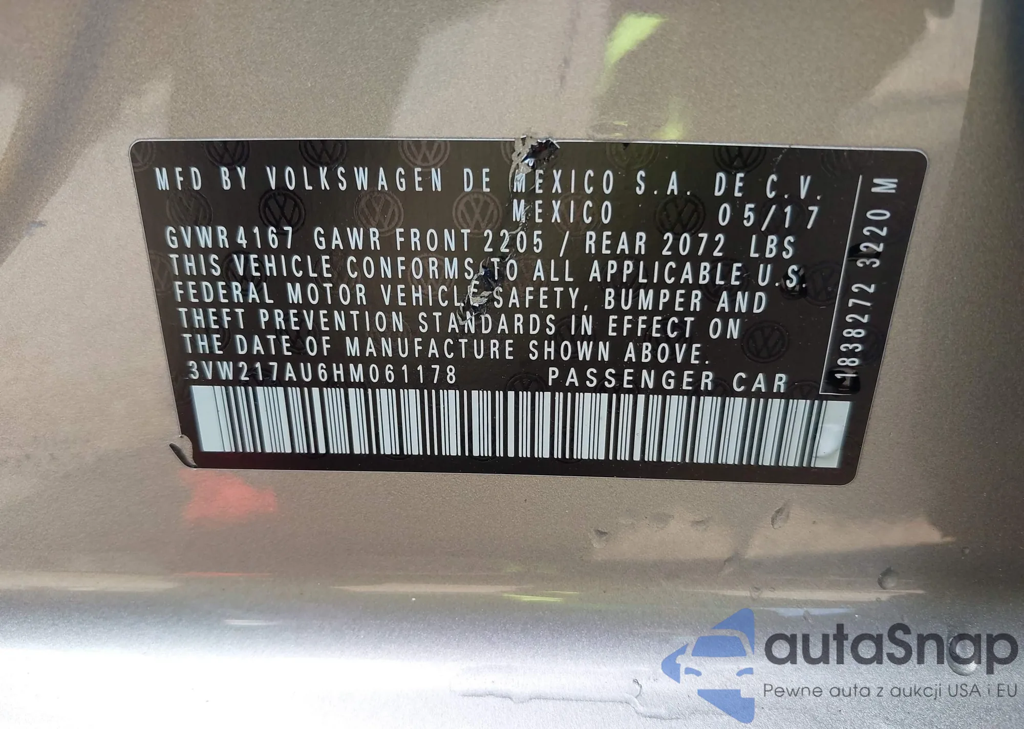 • VIN 3VW217AU6HM061178