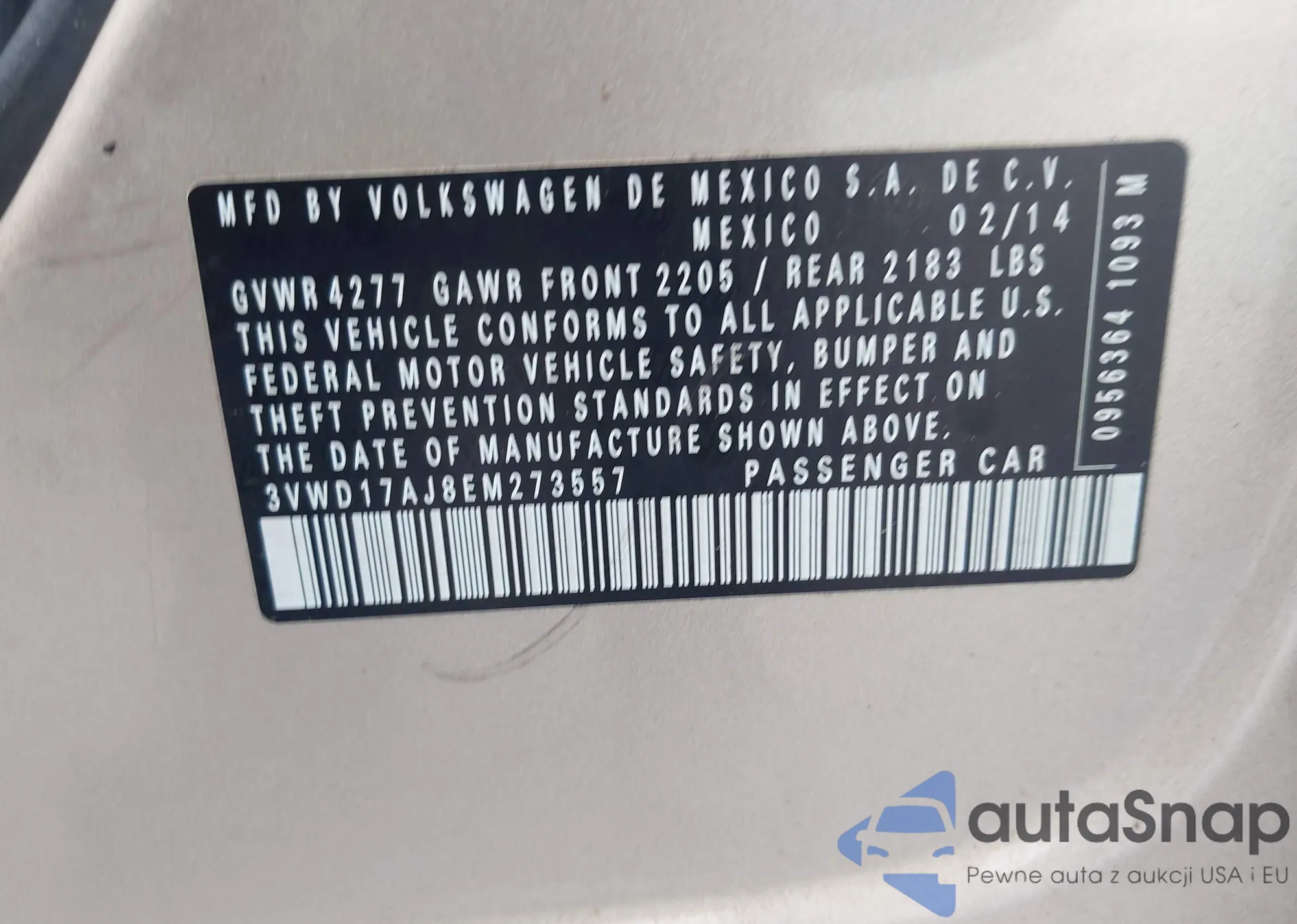 • VIN 3VWD17AJ8EM273557