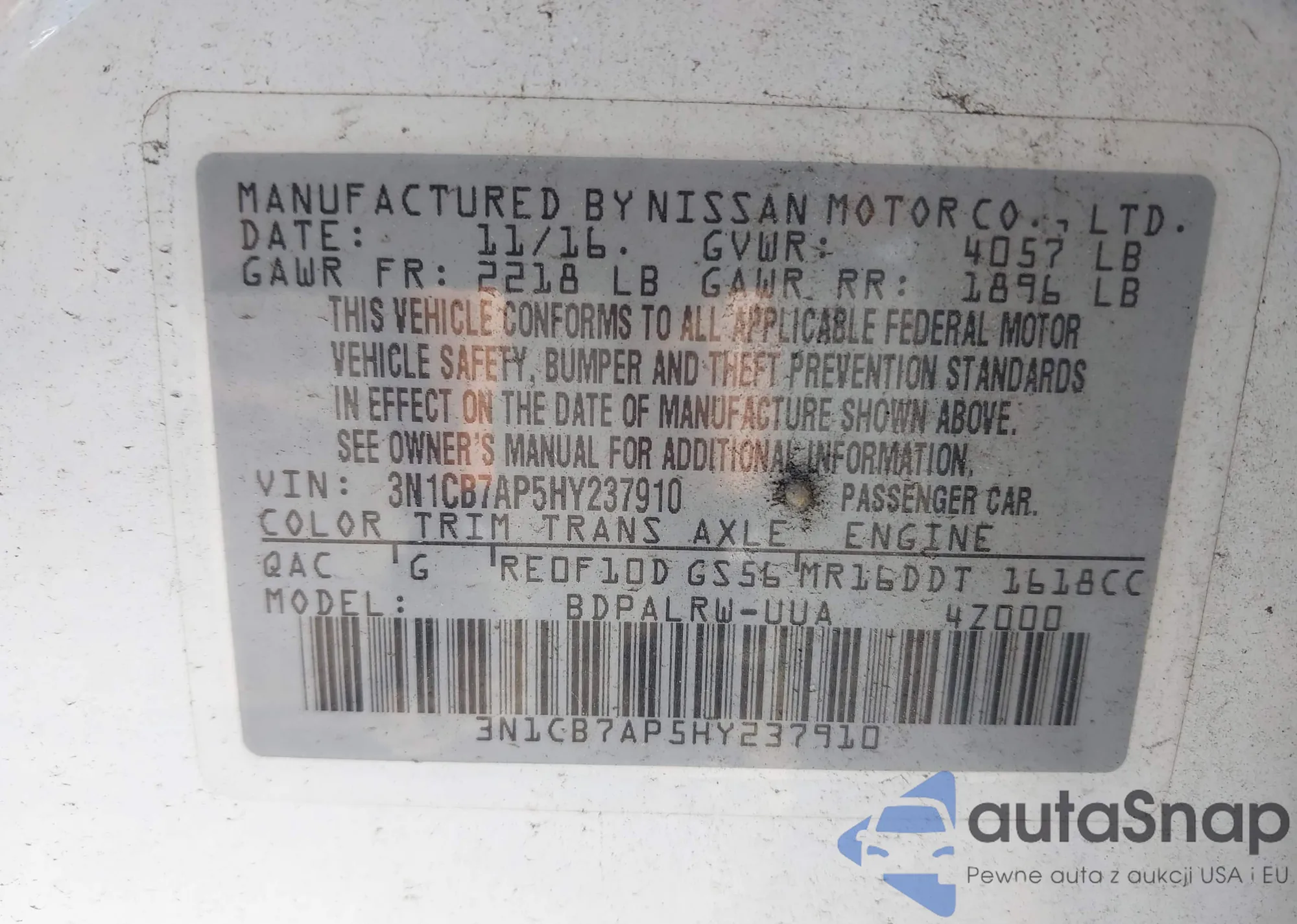 • VIN 3N1AB7AP3JY318871