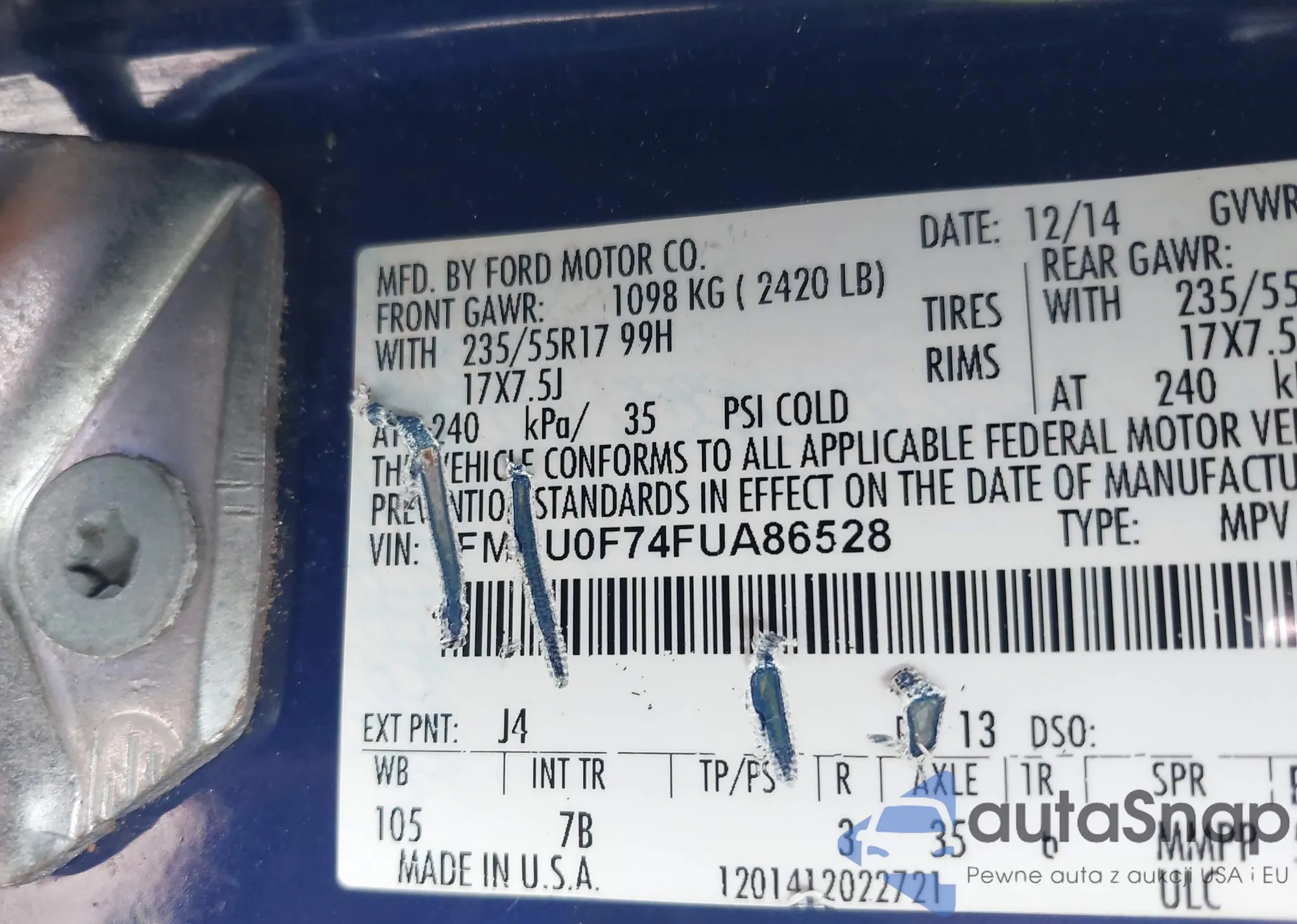 • VIN 1FMCU0F74FUA86528