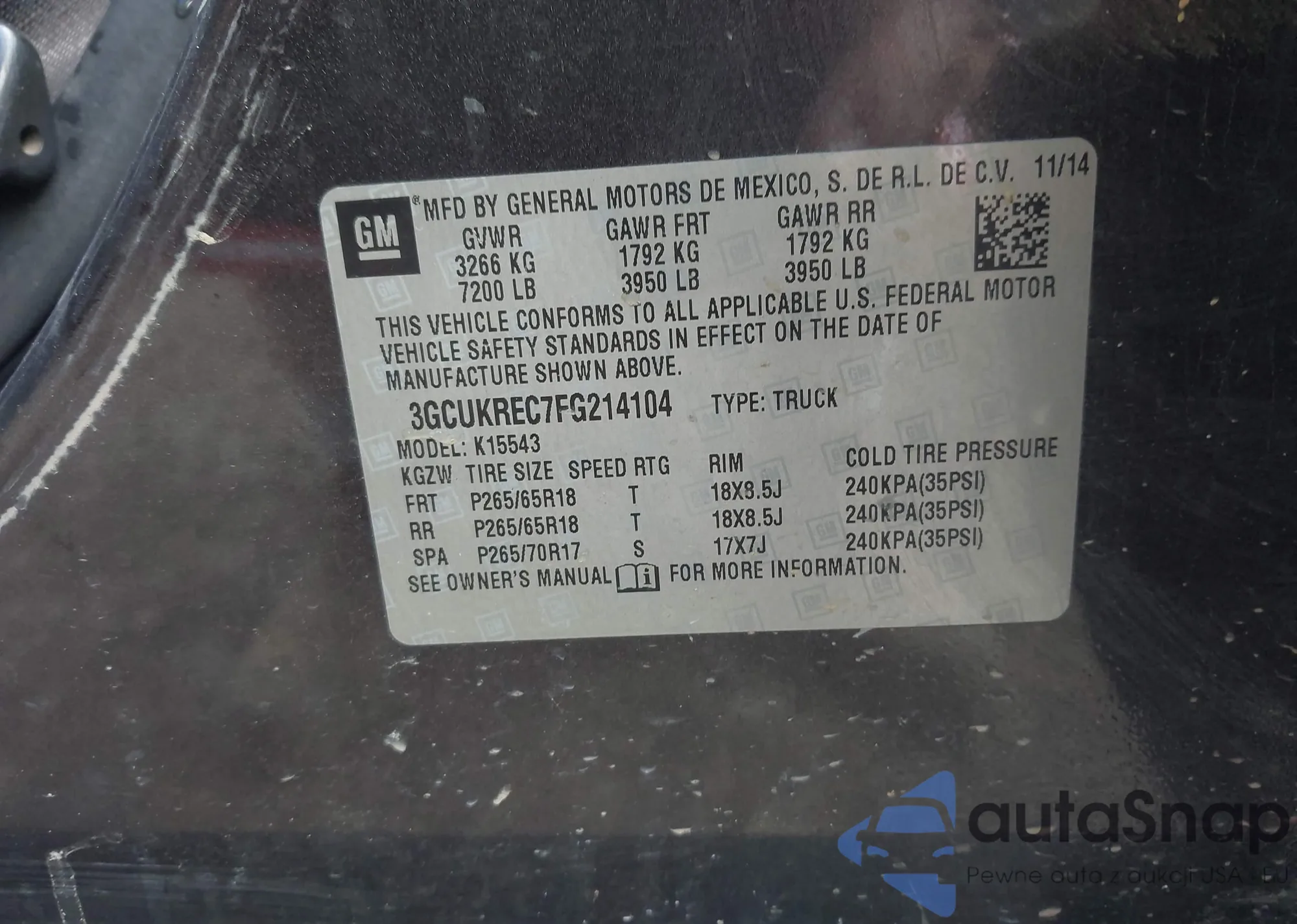 • VIN 3GCUKREC7FG214104