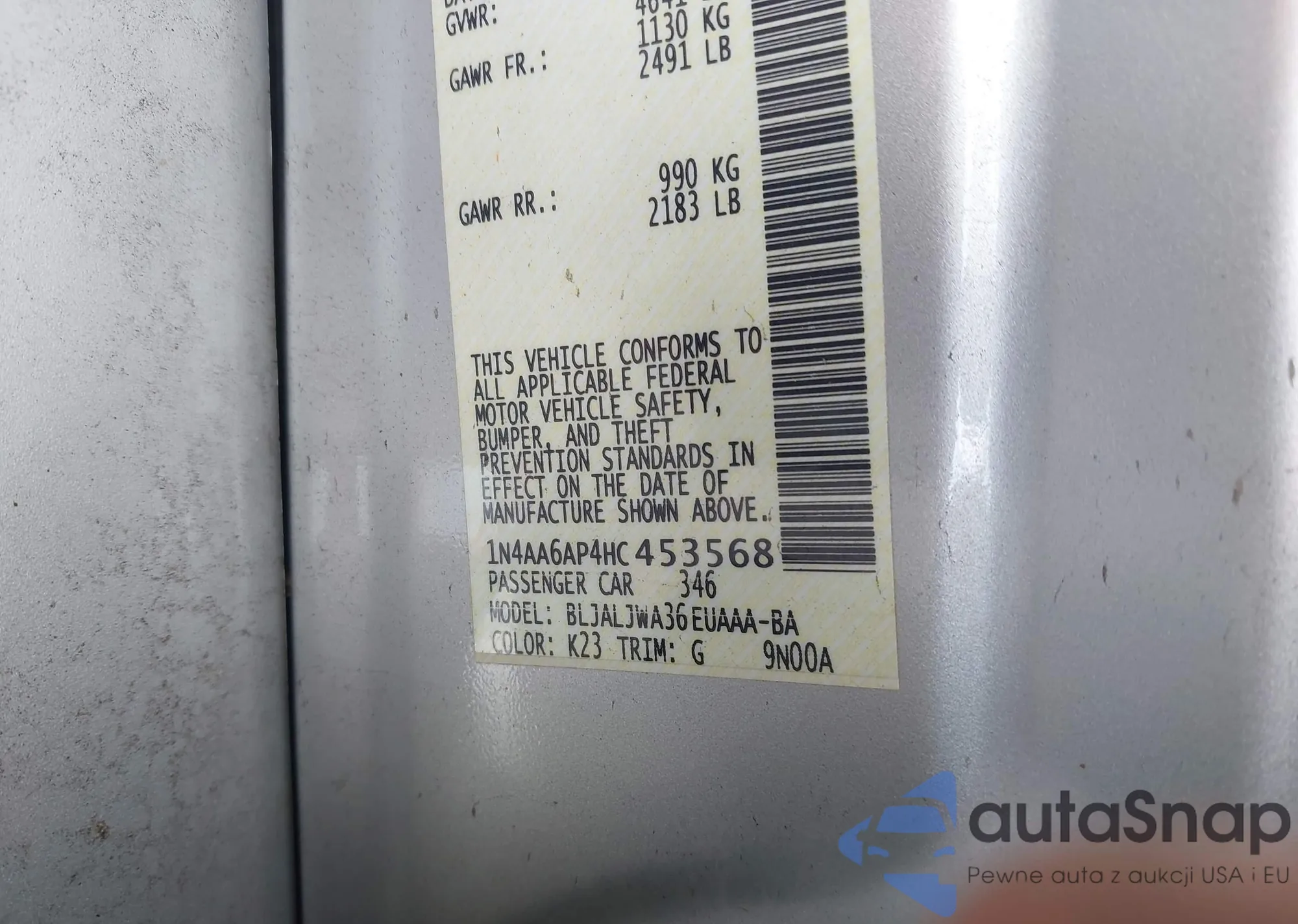 • VIN 1N4AA6AP4HC453568