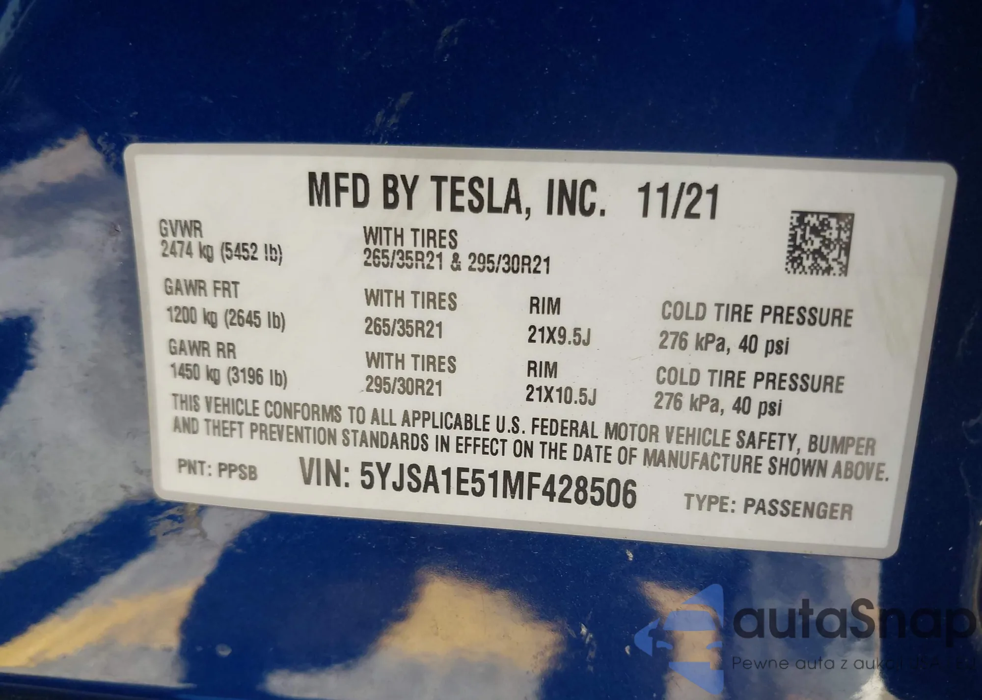 • VIN 5YJSA1E51MF428506