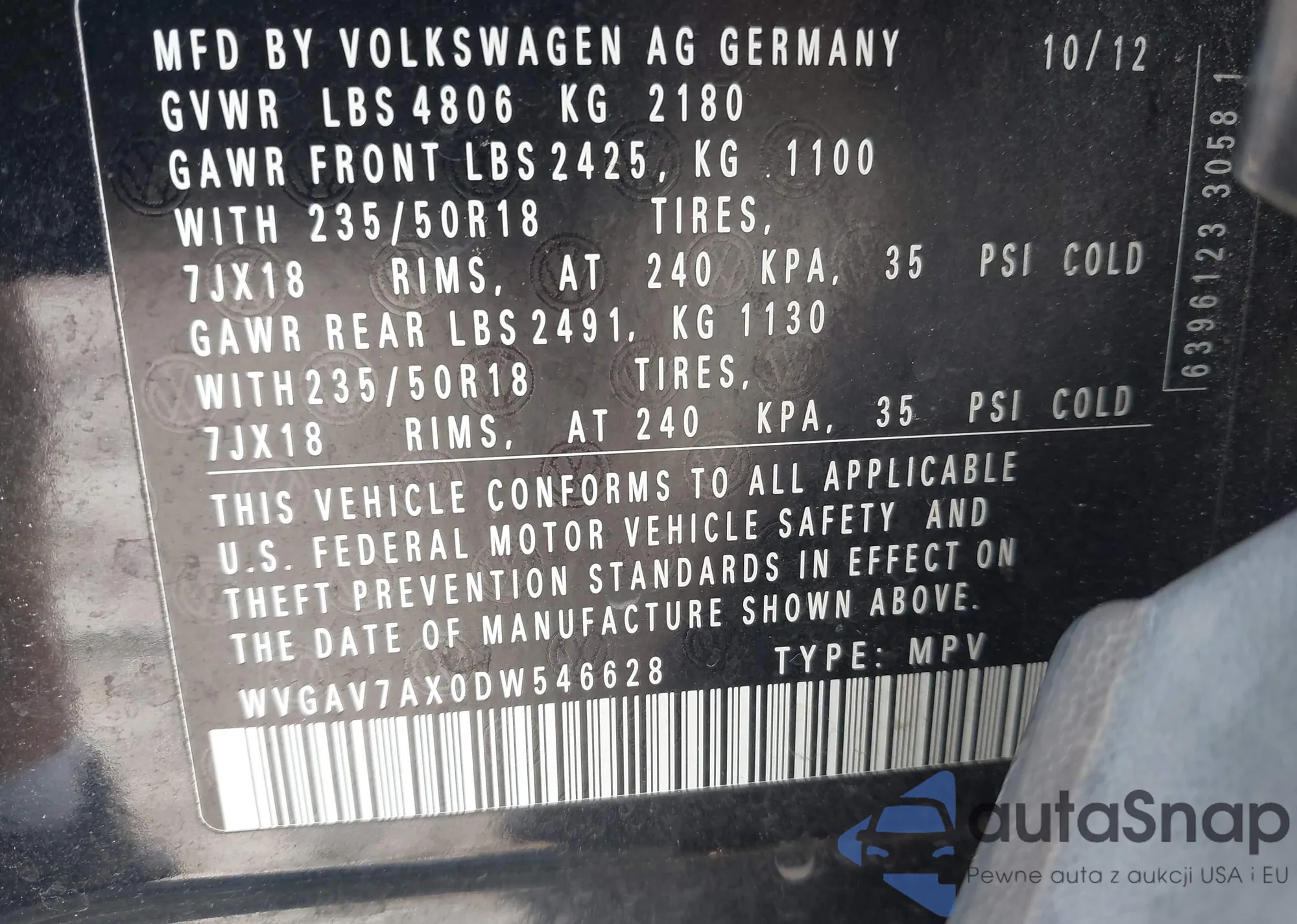 • VIN WVGAV7AX0DW546628