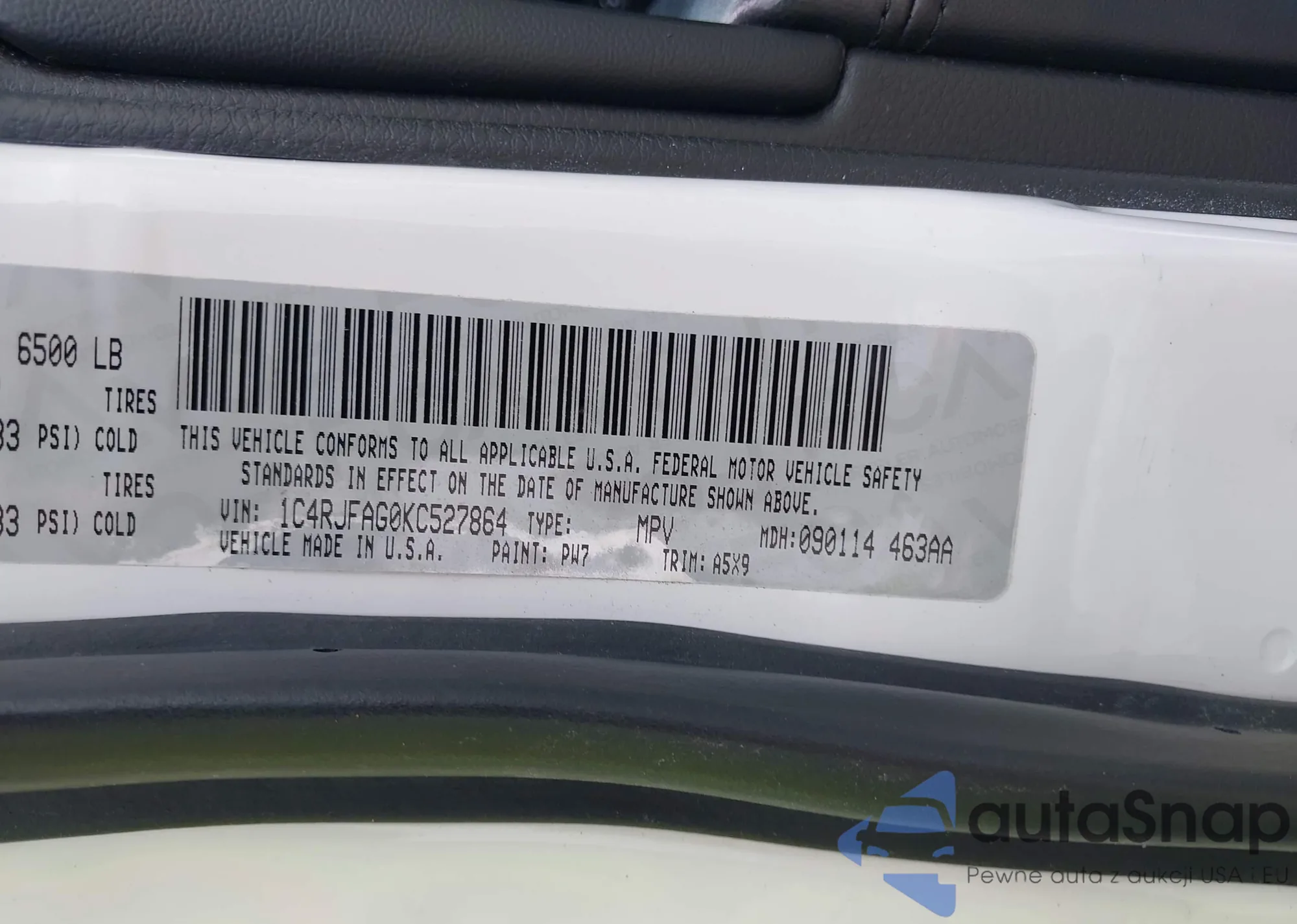 • VIN 1C4RJFAG0KC527864