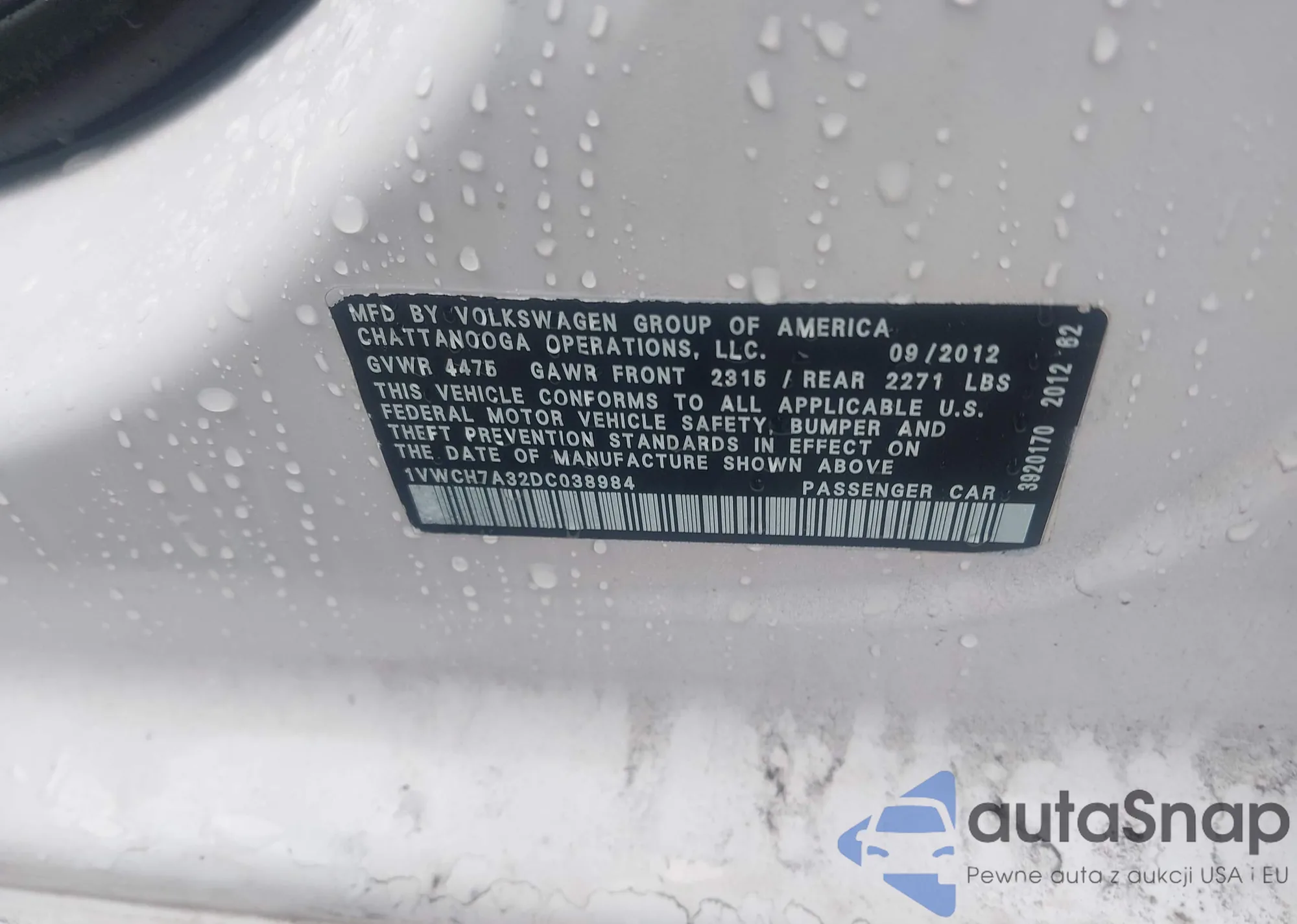 • VIN 1VWCH7A32DC038984