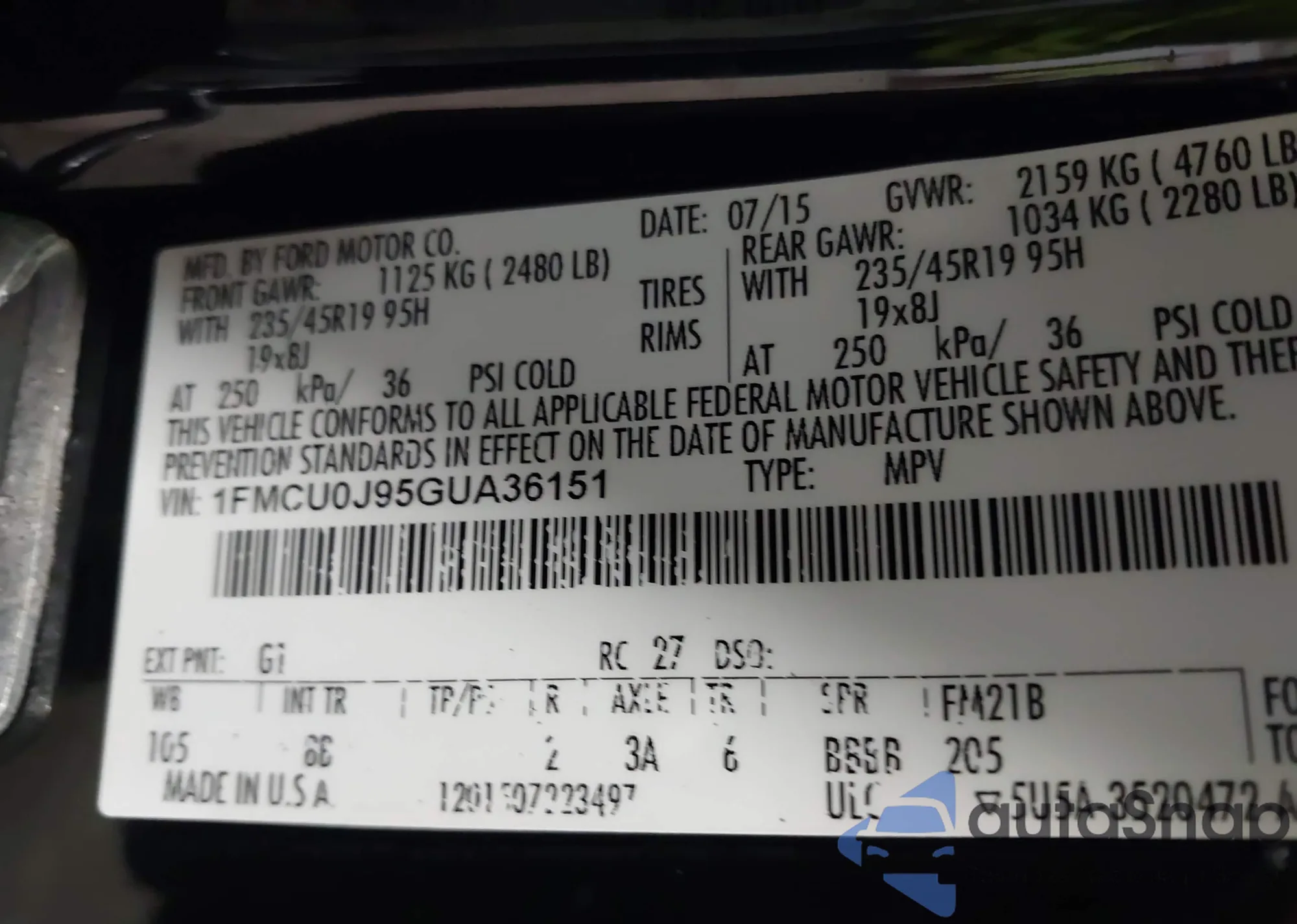 • VIN 2FMPK4J86HBC31608