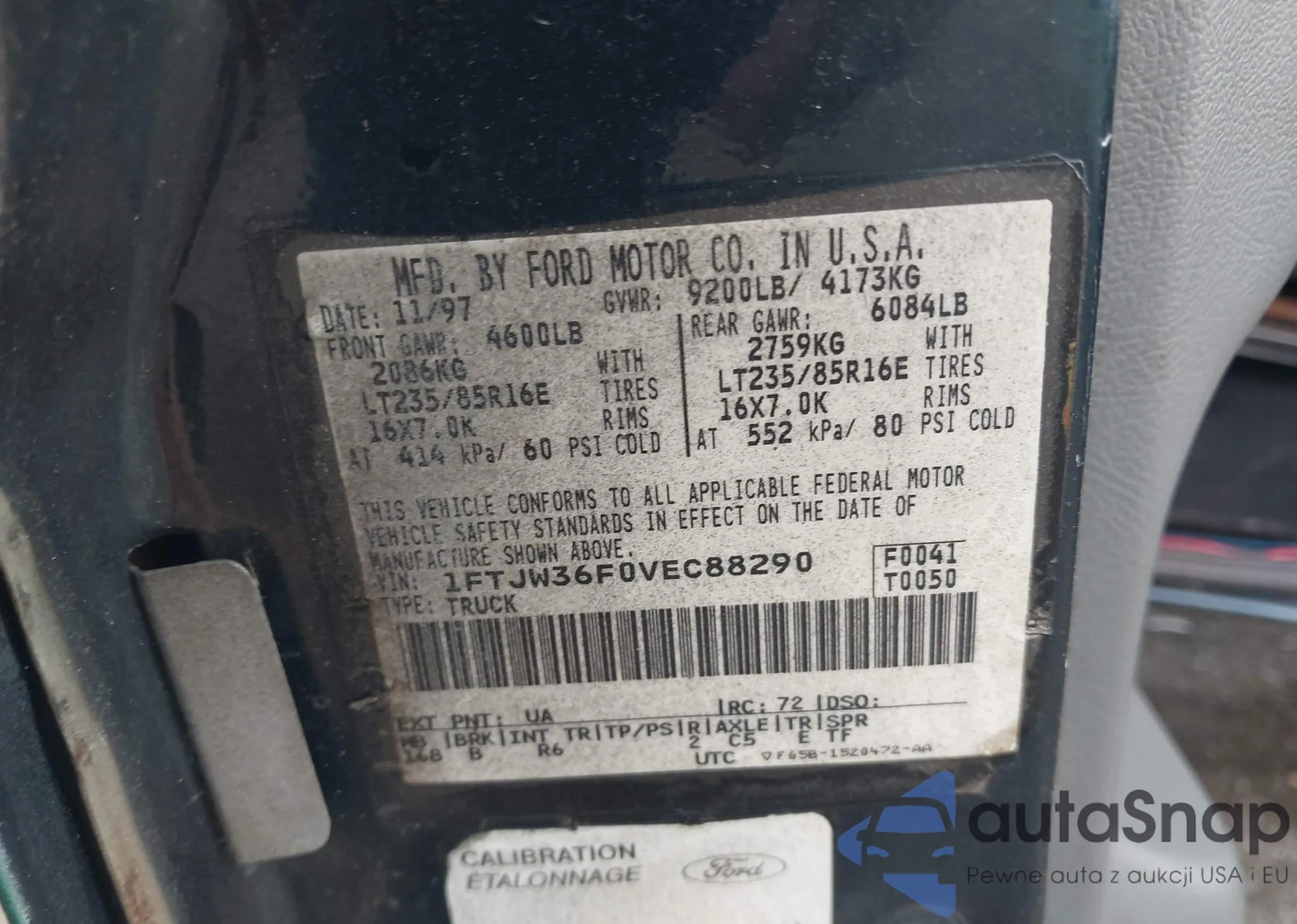 • VIN 1FTJW36F0VEC88290