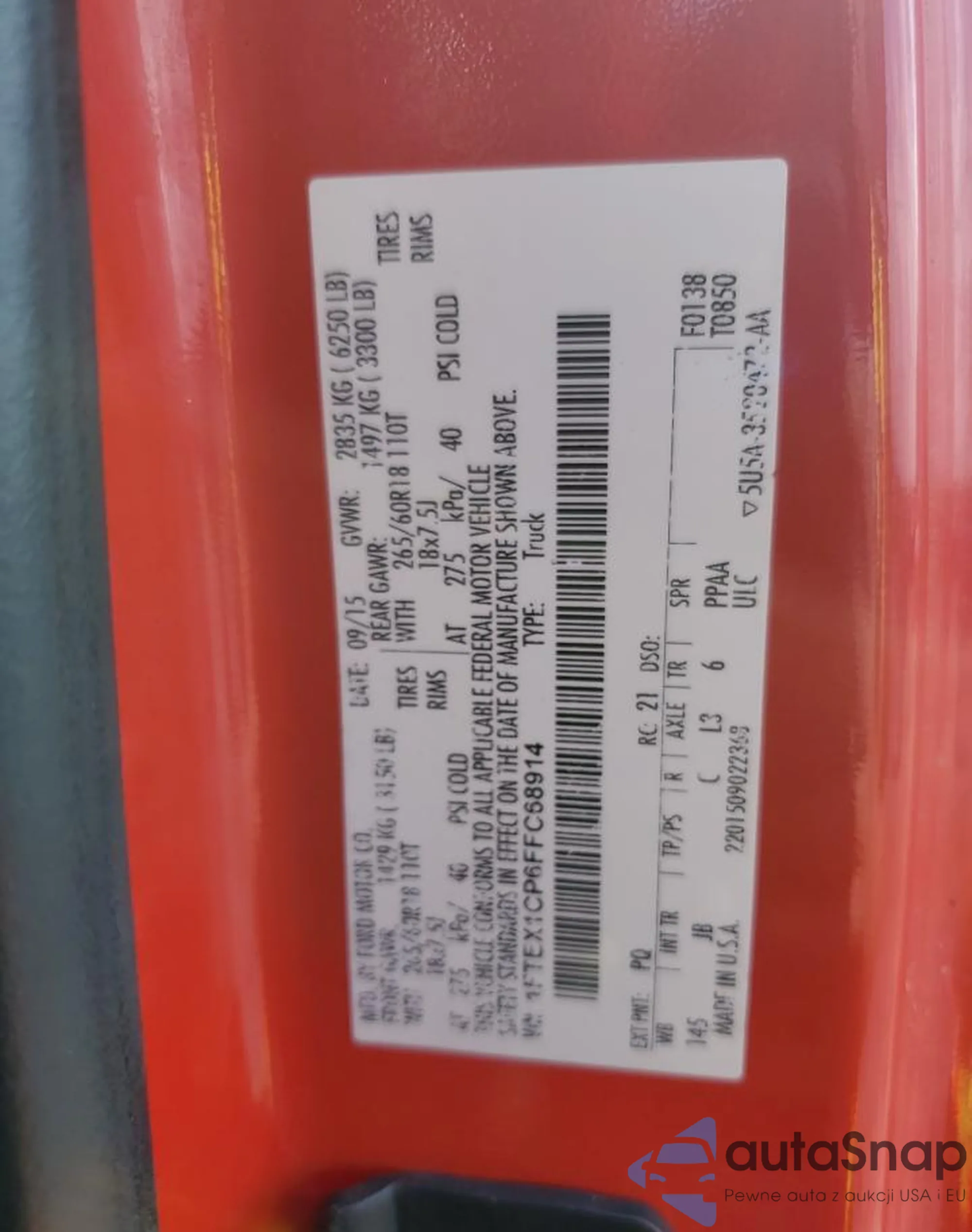 LOT: 66161565 VIN: 1FTEX1CP6FFC68914