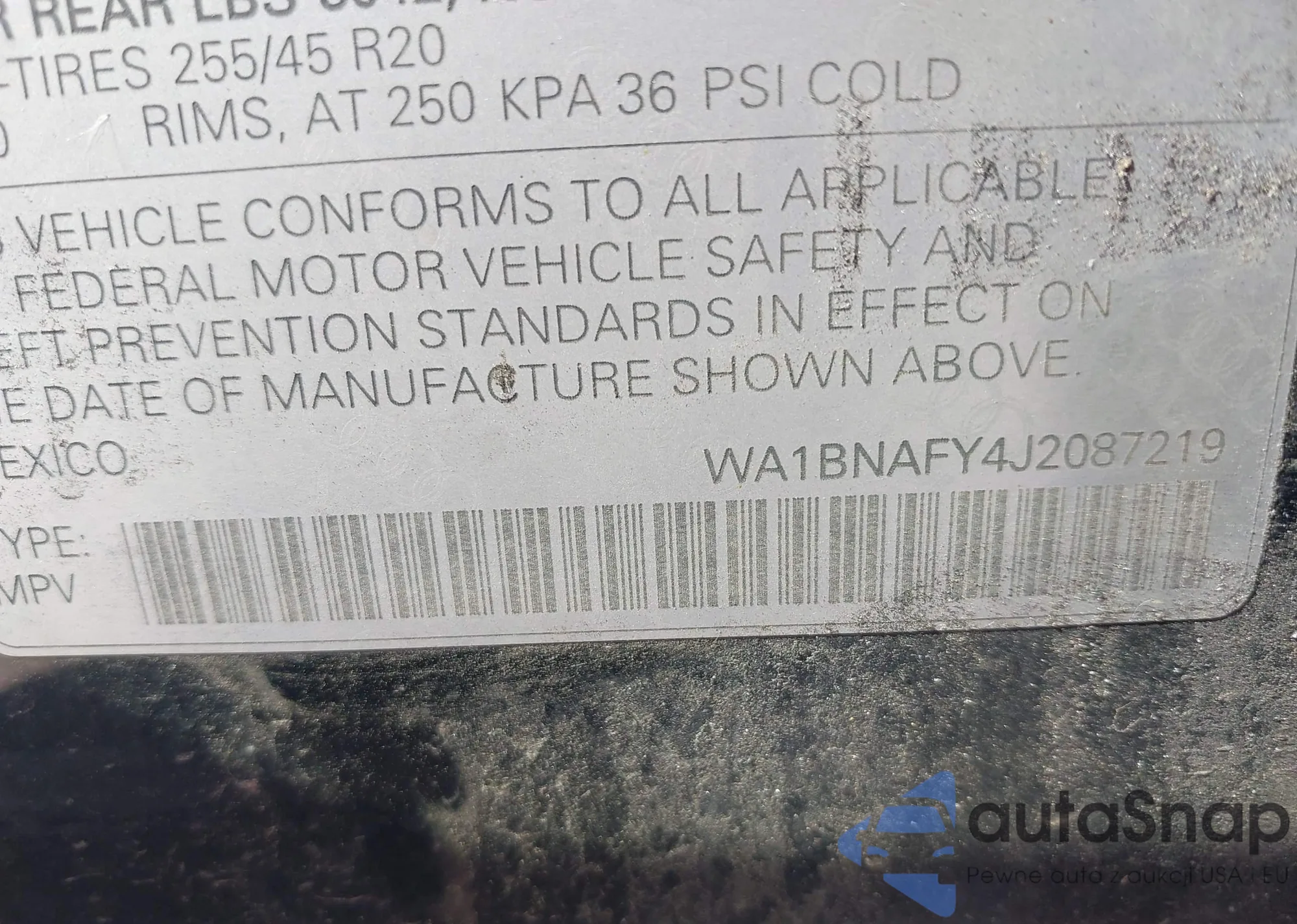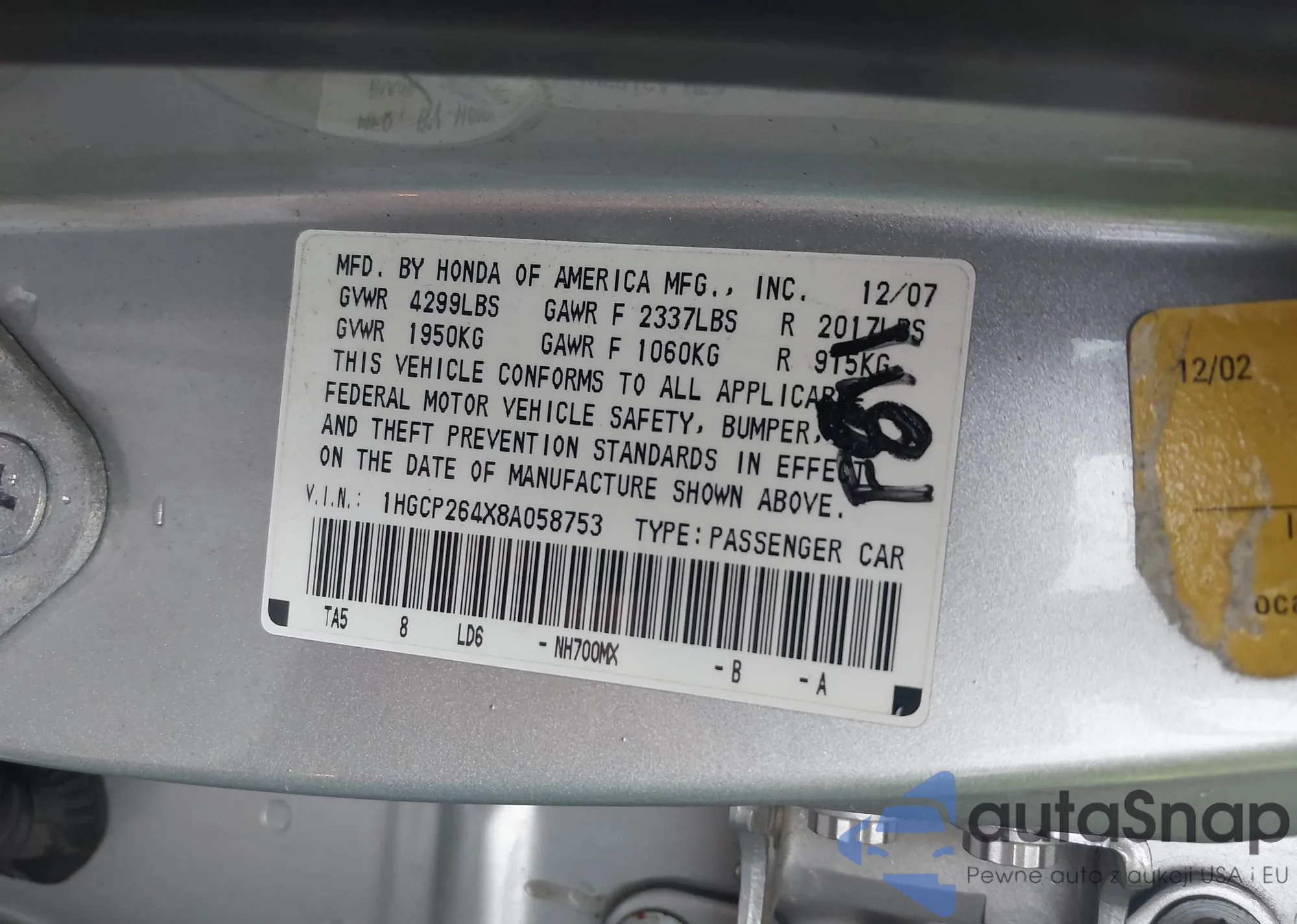 LOT: 42896431 VIN: 1HGCP264X8A058753