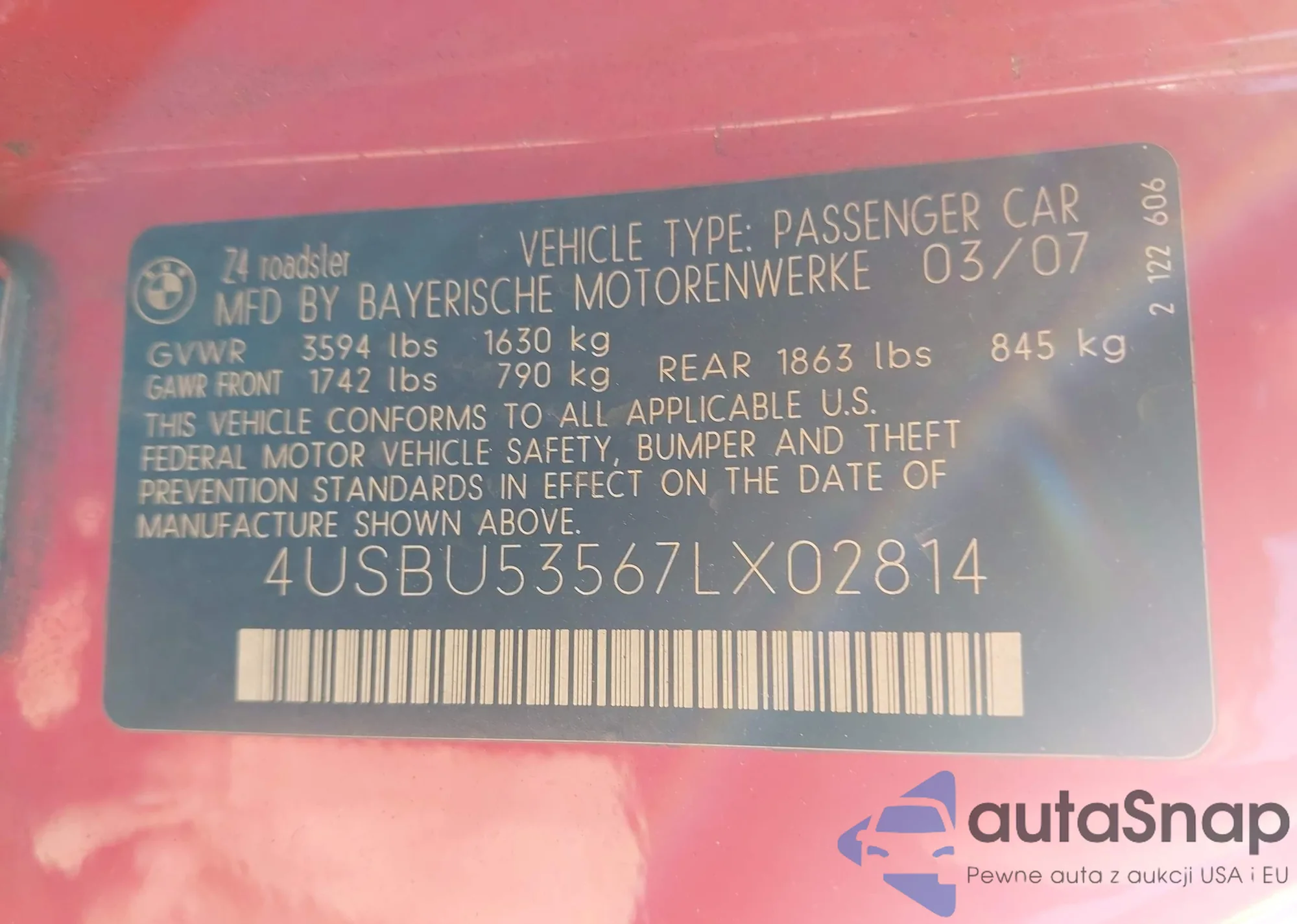 • VIN 4USBU53567LX02814
