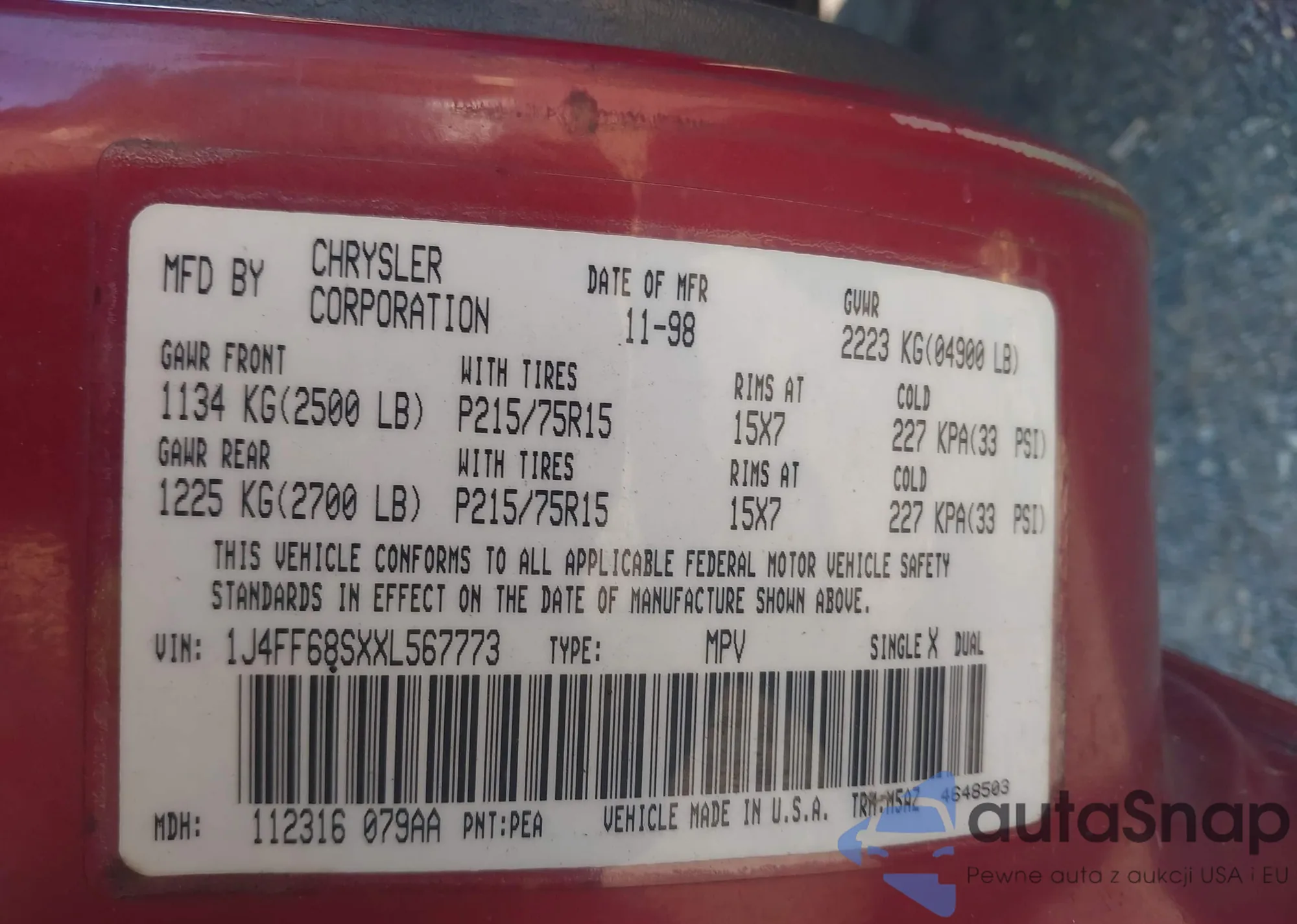• VIN 1J4FF68SXXL567773