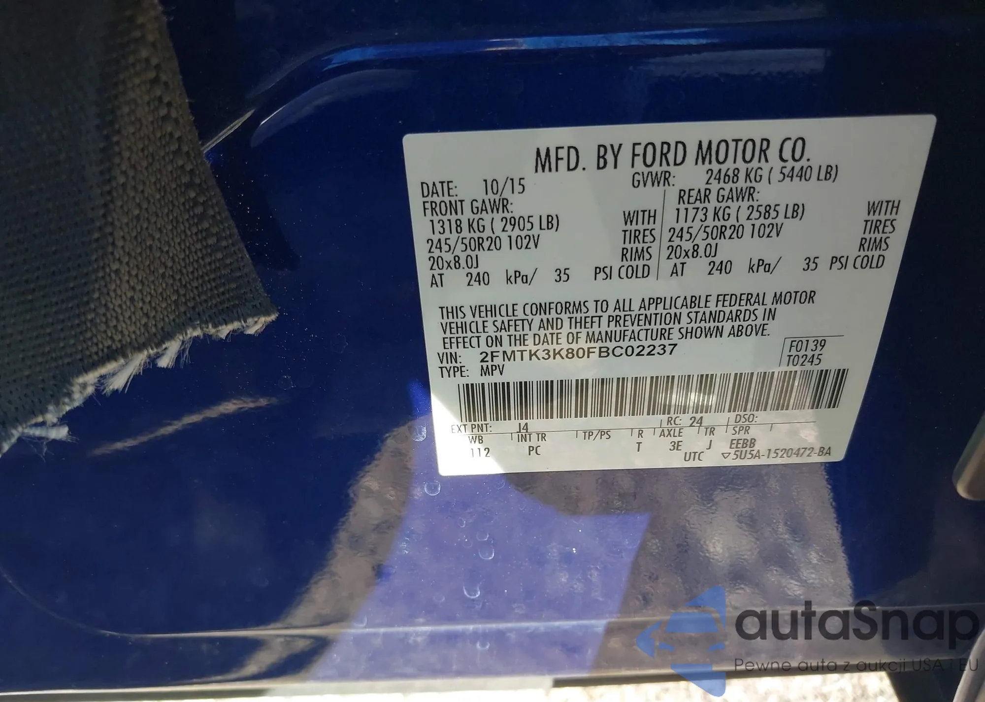 • VIN 1N4AL3AP5FC425672