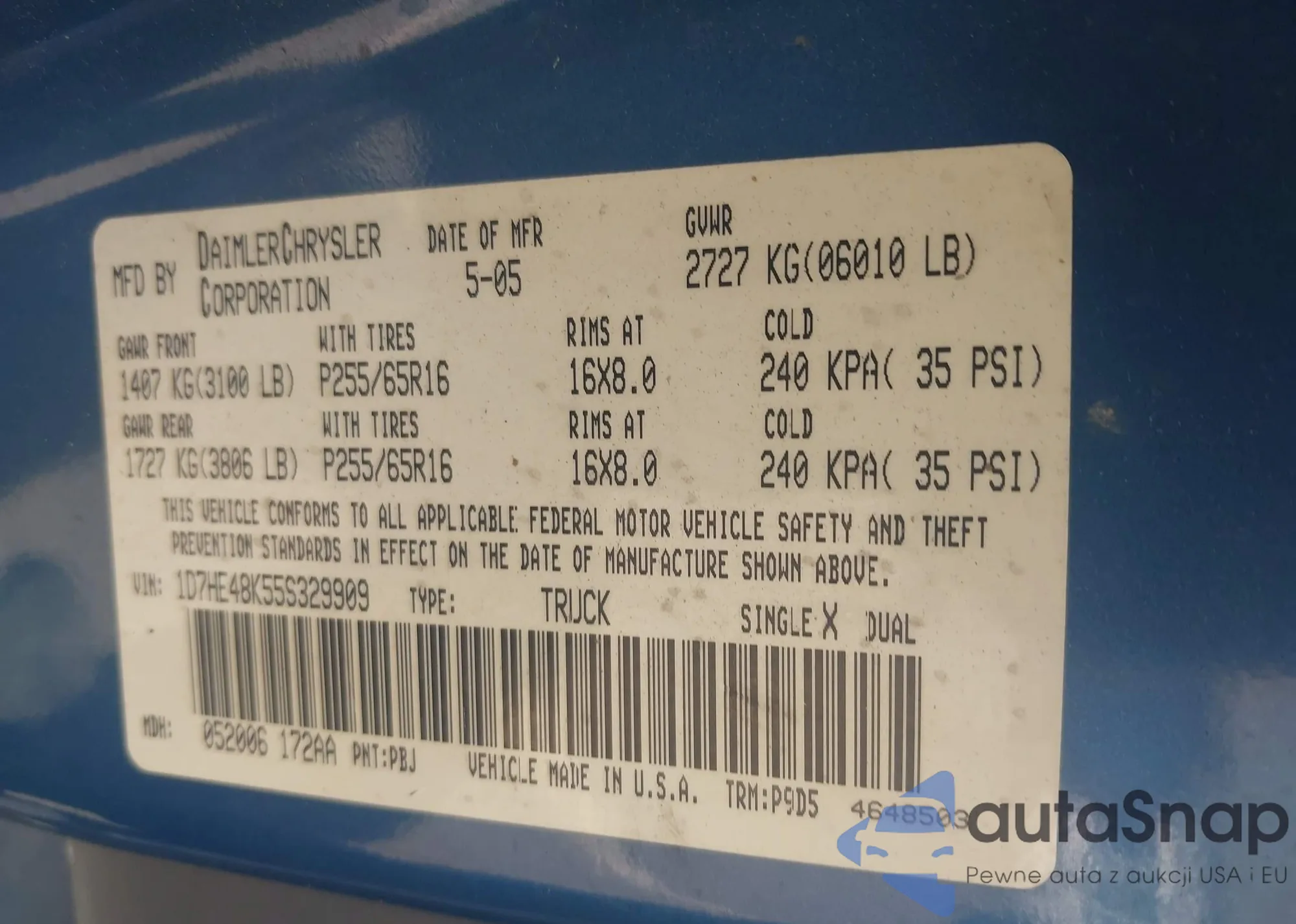 • VIN 1D7HE48K55S329909