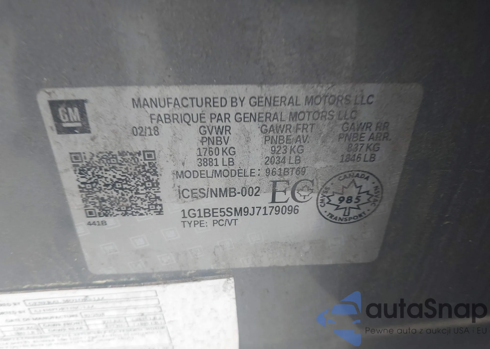 • VIN 1G1BE5SM9J7179096