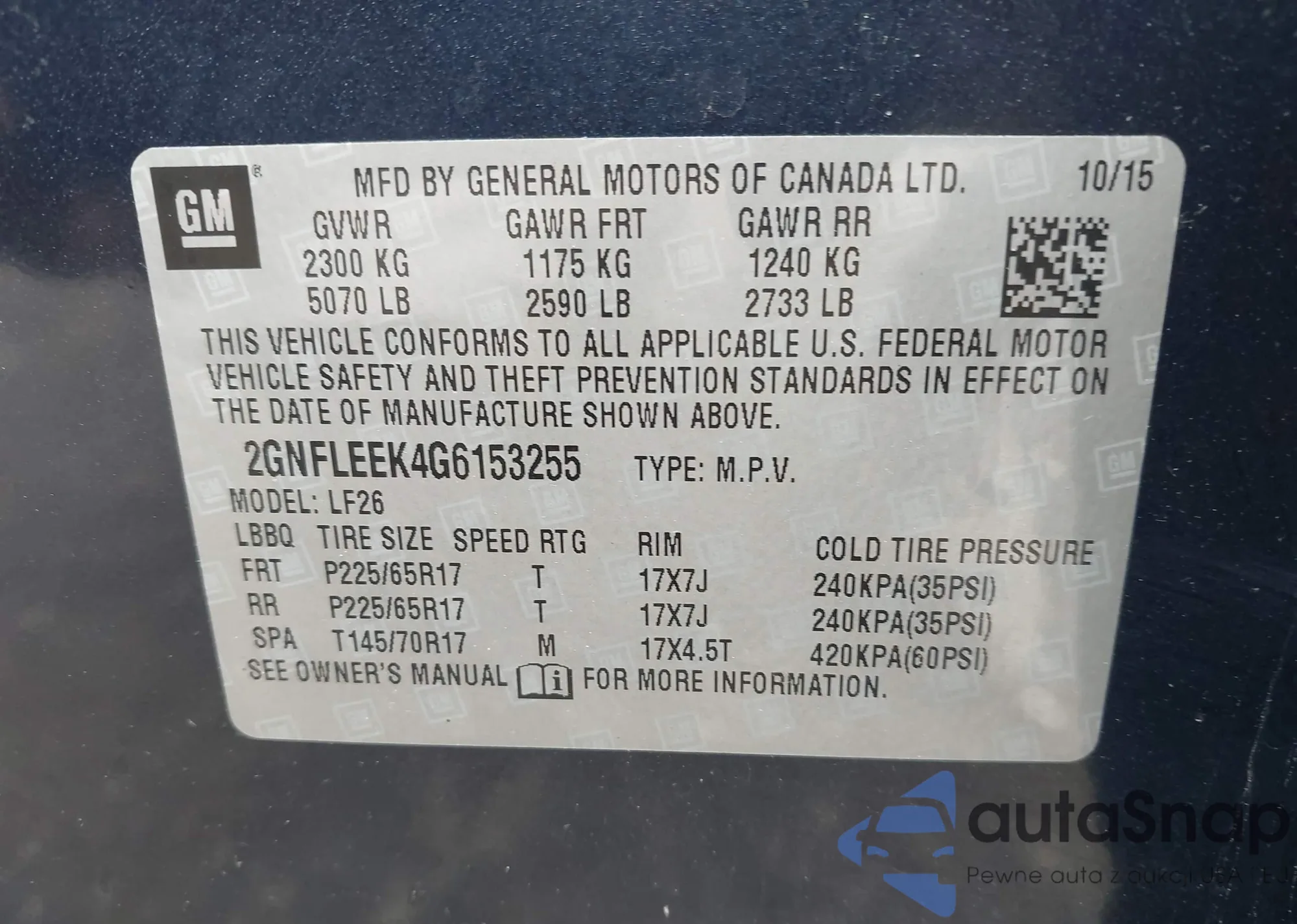 • VIN 2GNFLEEK4G6153255