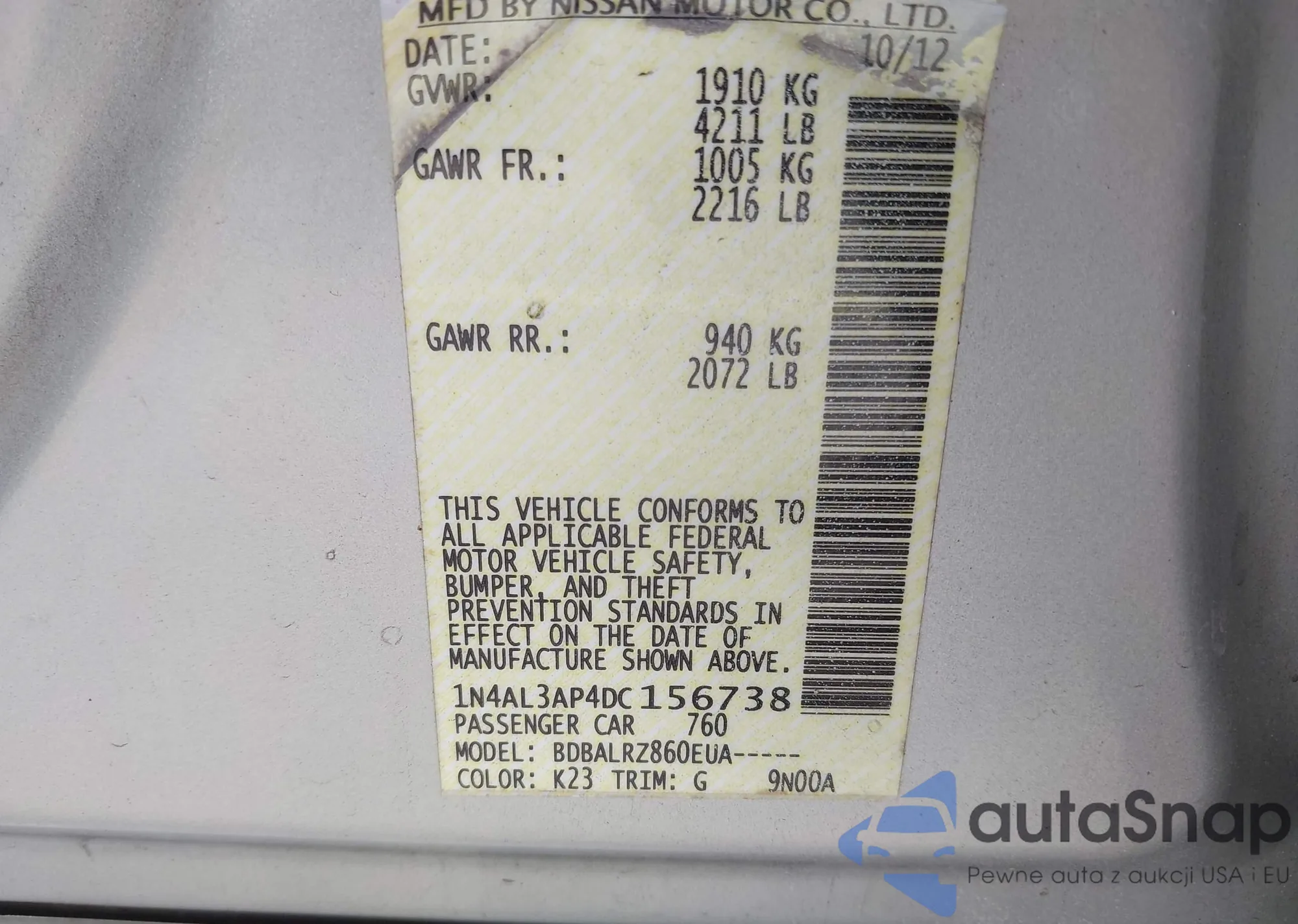 LOT: 42598203 VIN: 1N4AL3AP5FC425672