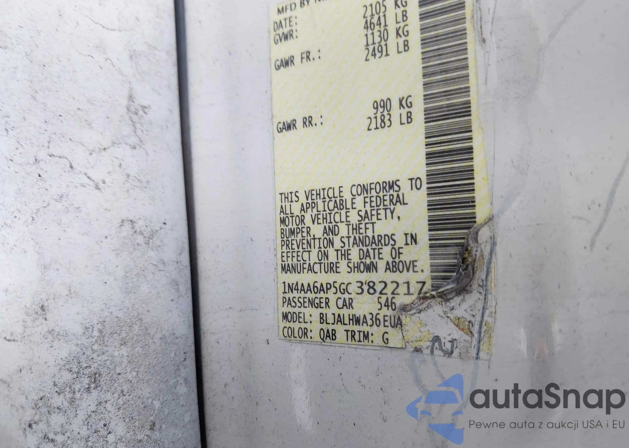 • VIN 1N4AA6AP5GC382217