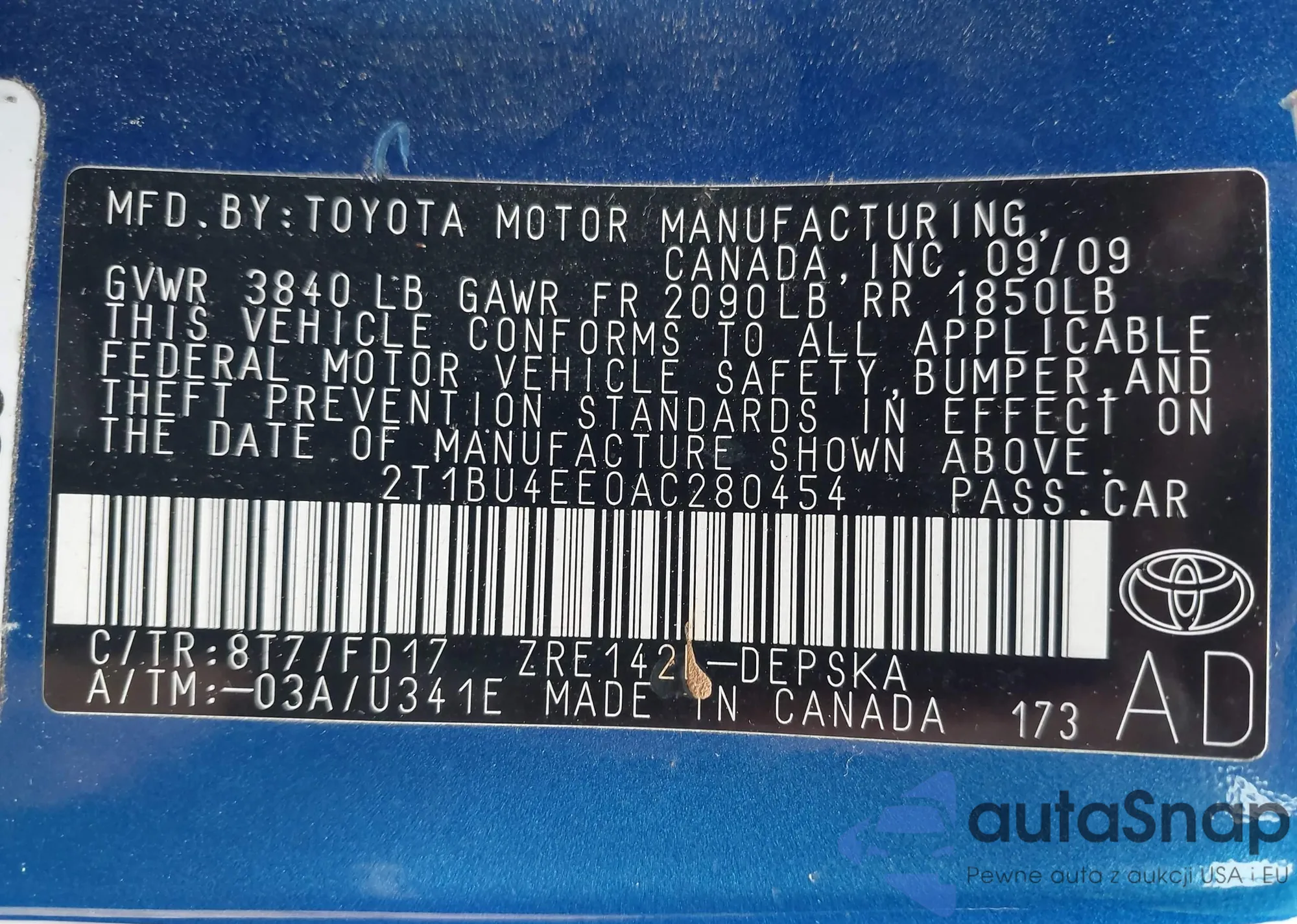 • VIN 2T1BU4EE0AC280454