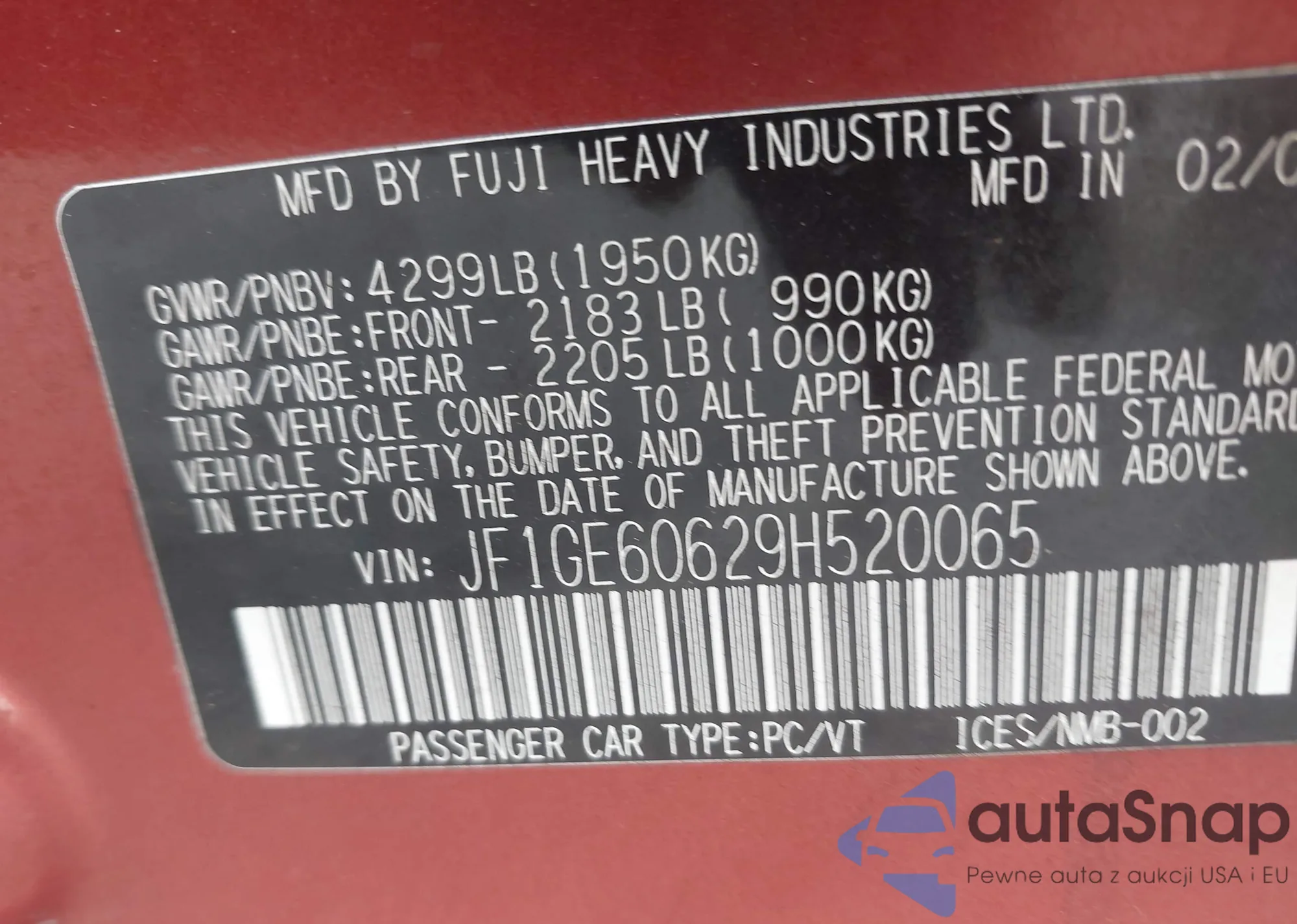 • VIN JF1GE60629H520065