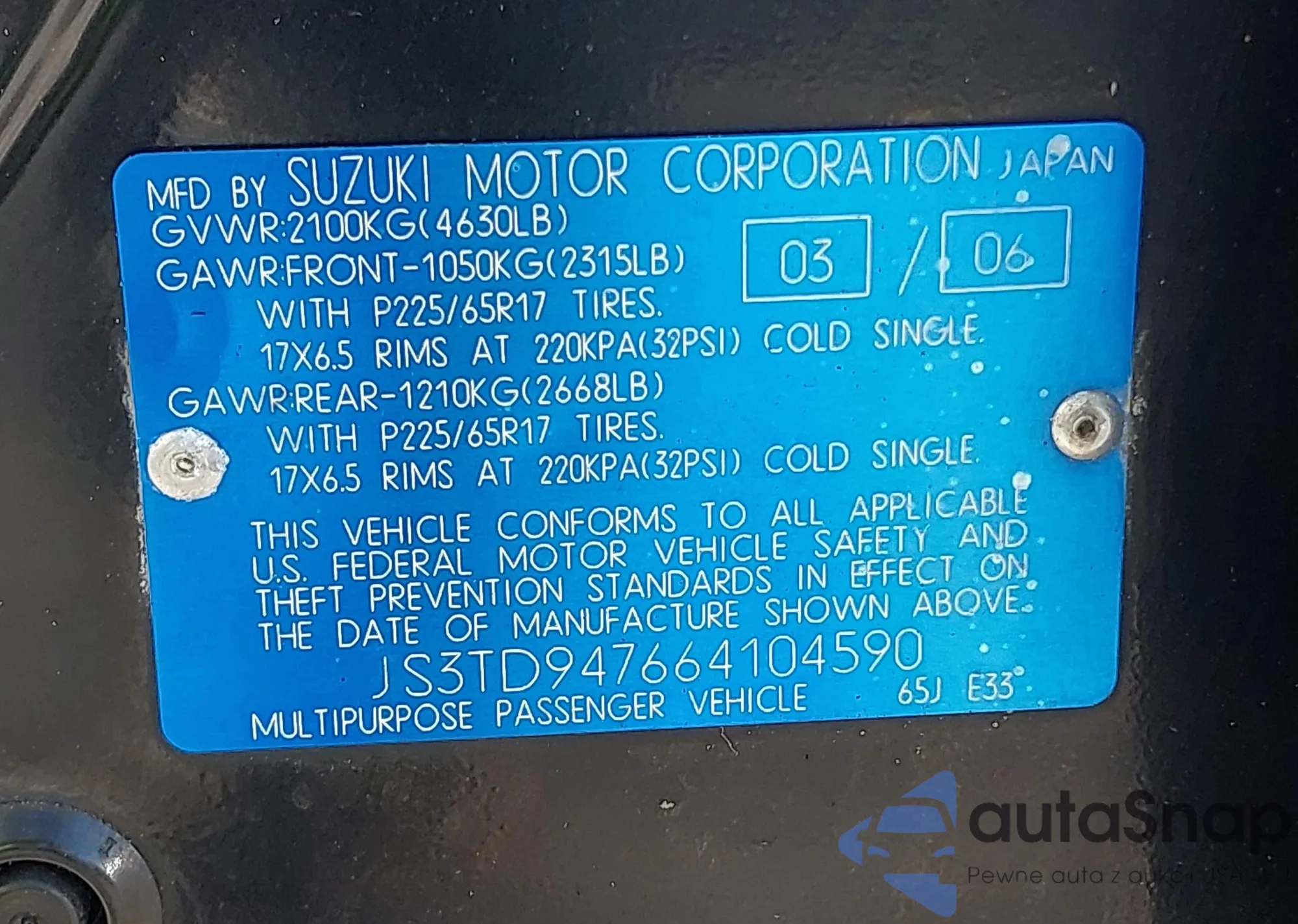 • VIN JS3TD947664104590