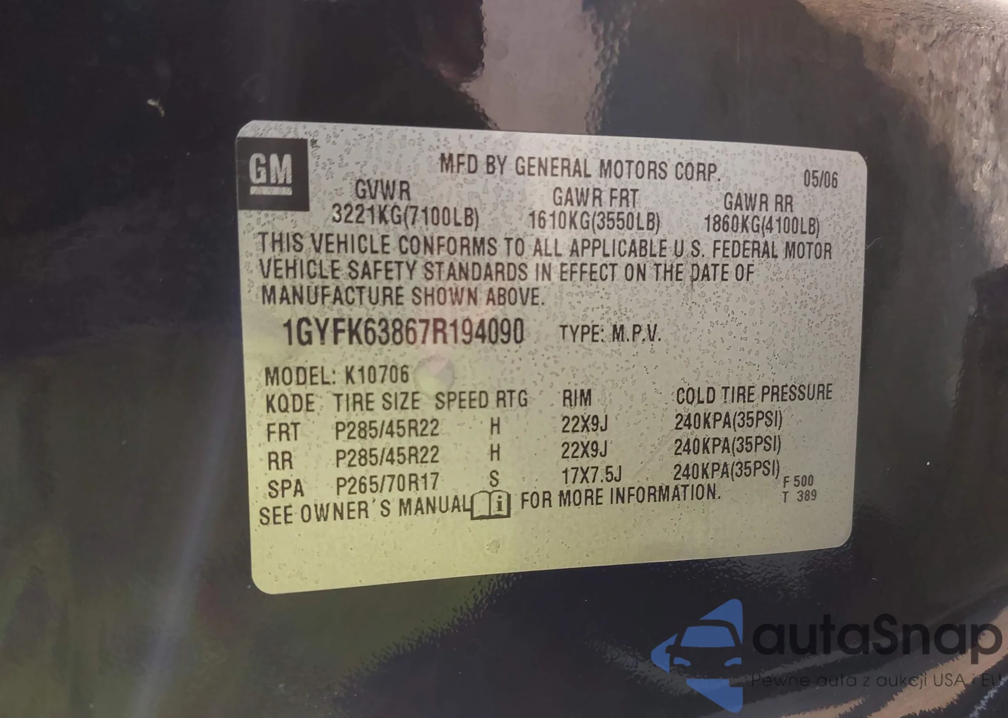 LOT: 41295779 VIN: 1GYFK63867R194090