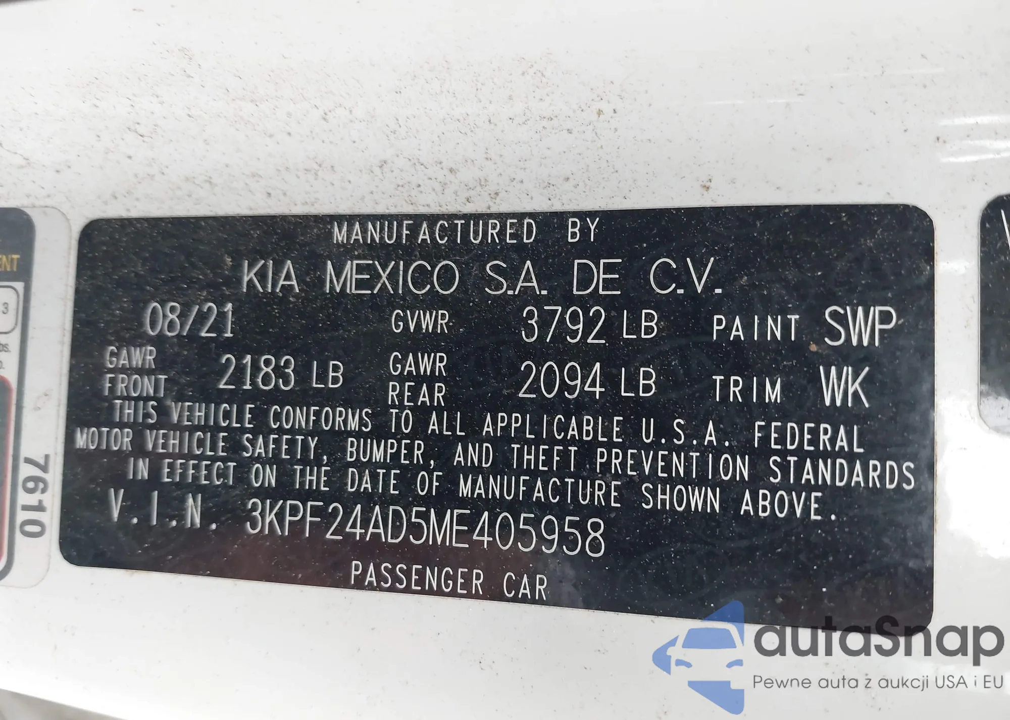 • VIN 3KPF24AD5ME405958