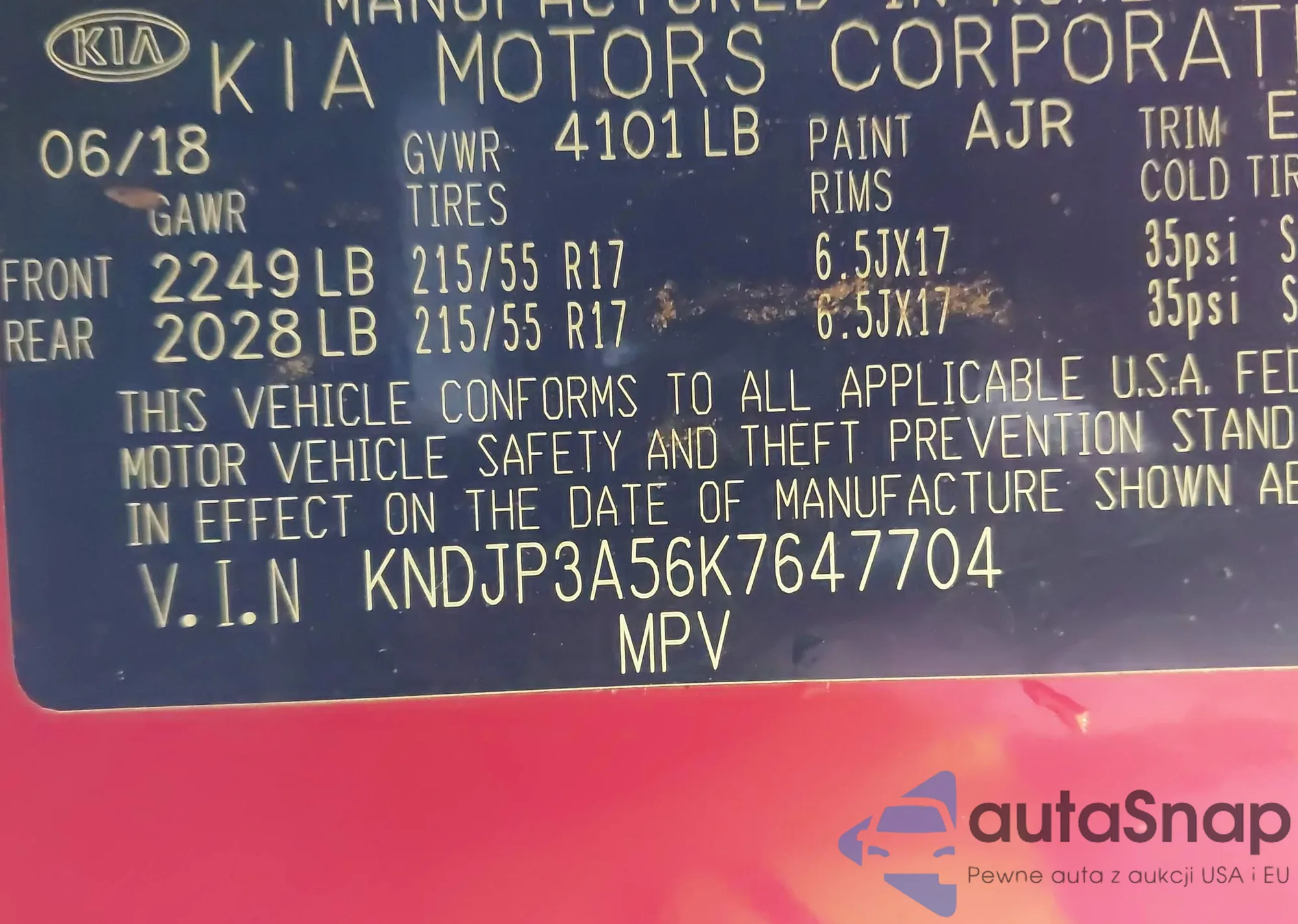 LOT: 42349161 VIN: KNDJP3A56K7647704