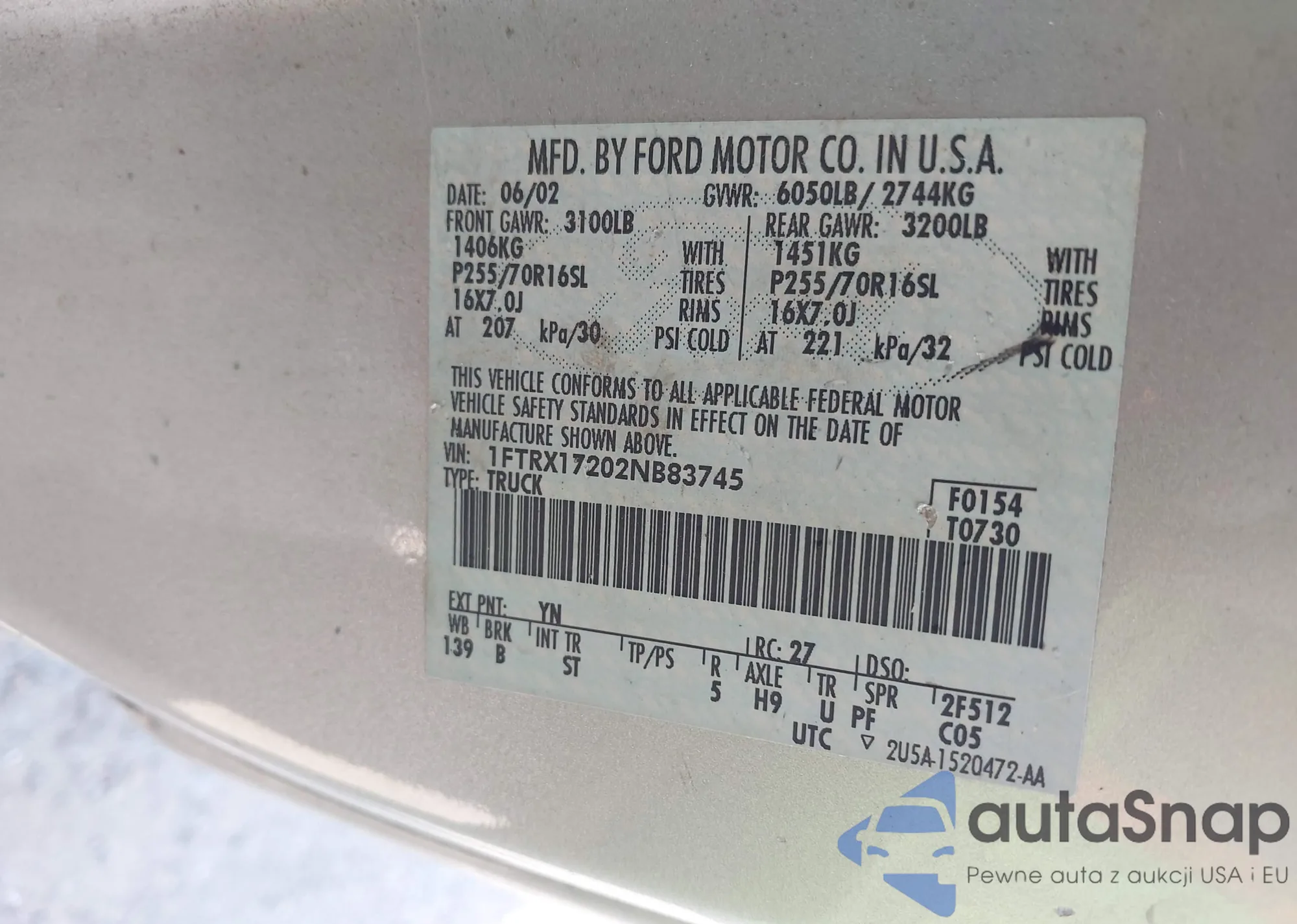 LOT: 41769415 VIN: 1FTRX17202NB83745