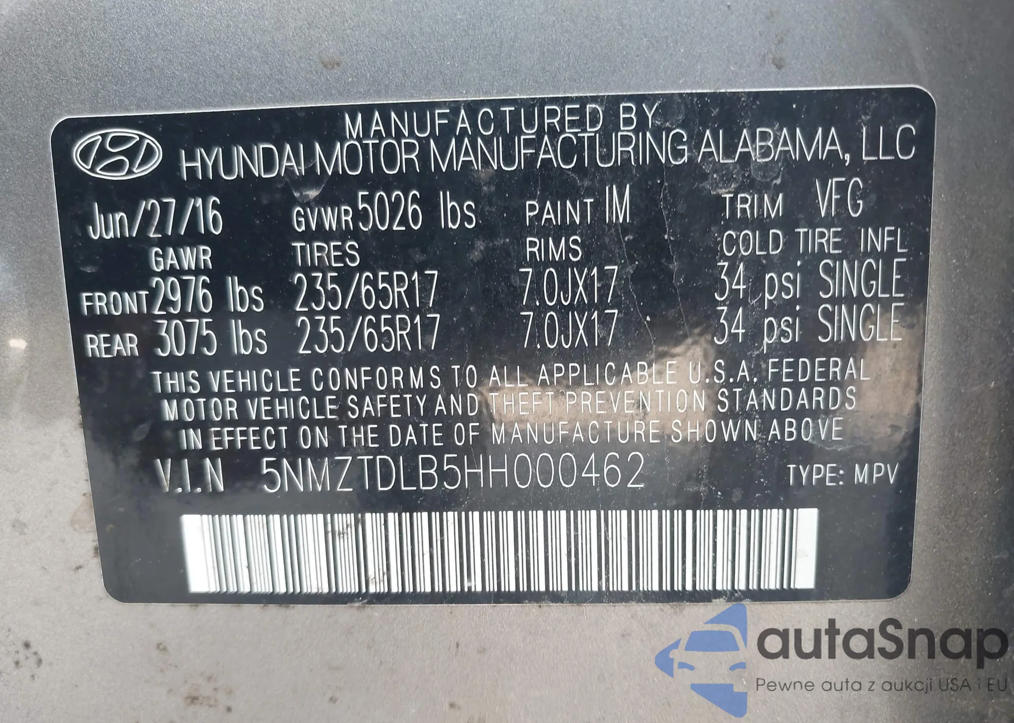 • VIN 5NMZTDLB5HH000462
