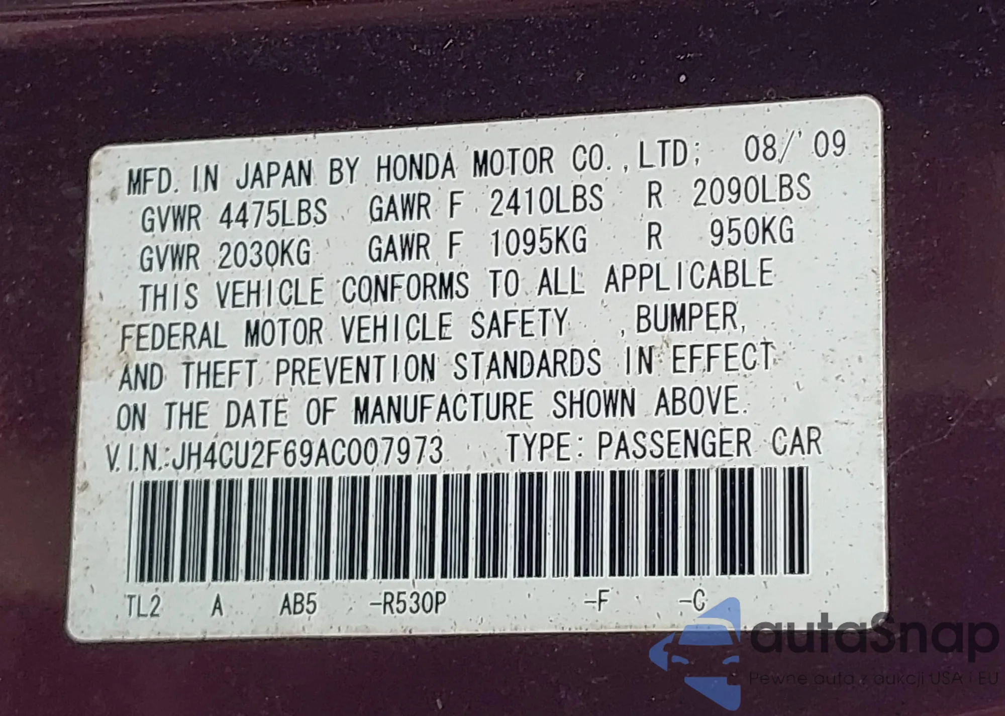 • VIN 2HKRW1H91MH410751