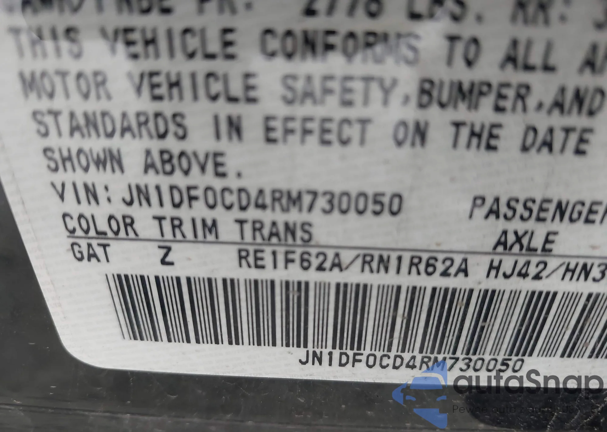 LOT: 42098506 VIN: JN1DF0CD4RM730050