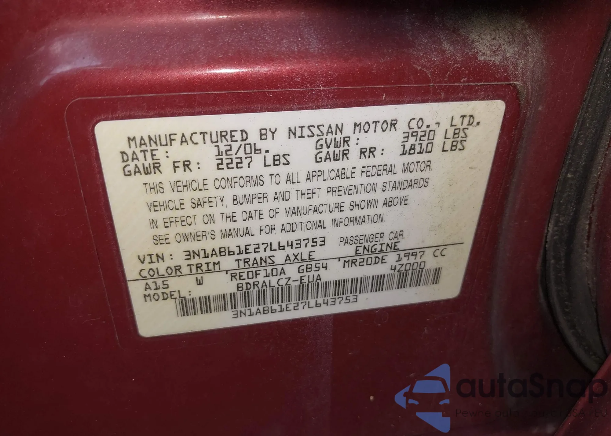 • VIN 1N4AL3APXGC122341