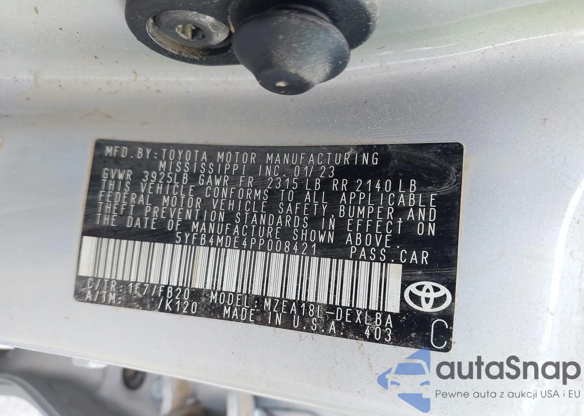 • VIN 5YFB4MDE4PP008421