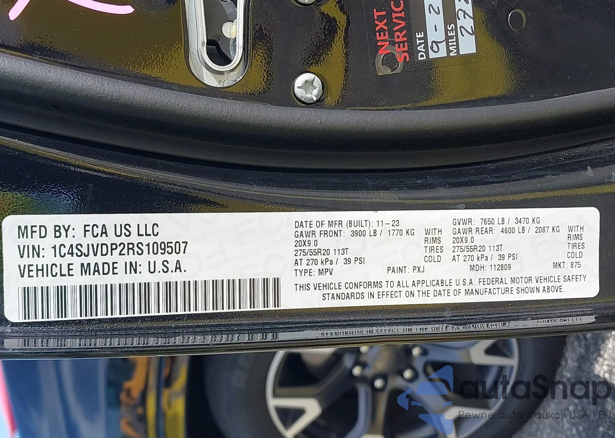 • VIN 1C4SJVDP2RS109507
