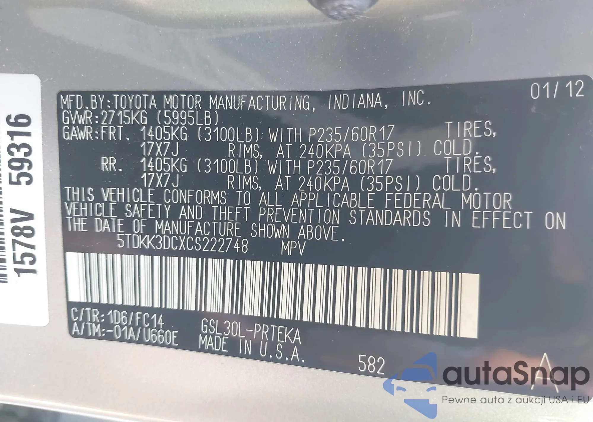 • VIN 4T1BF1FK1DU715028