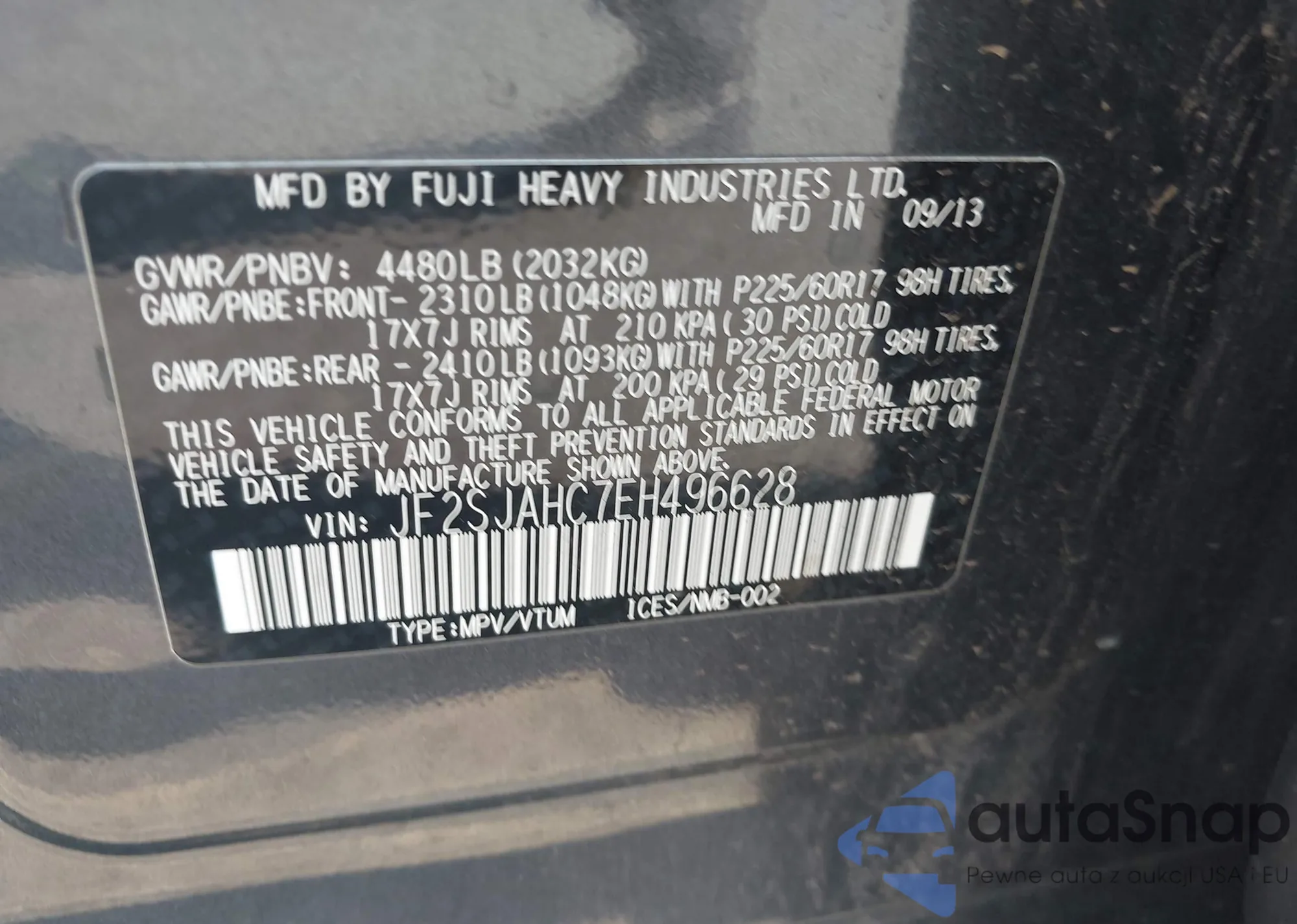 • VIN JF2SJAHC7EH496628