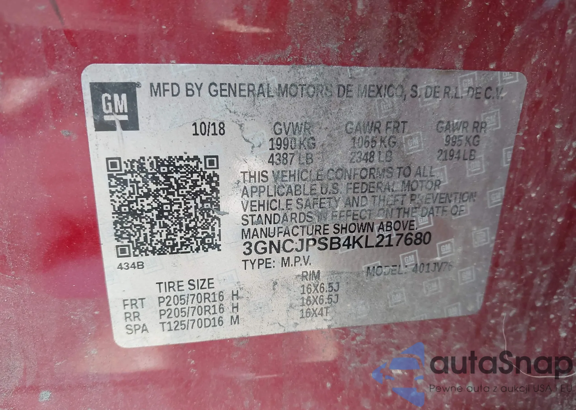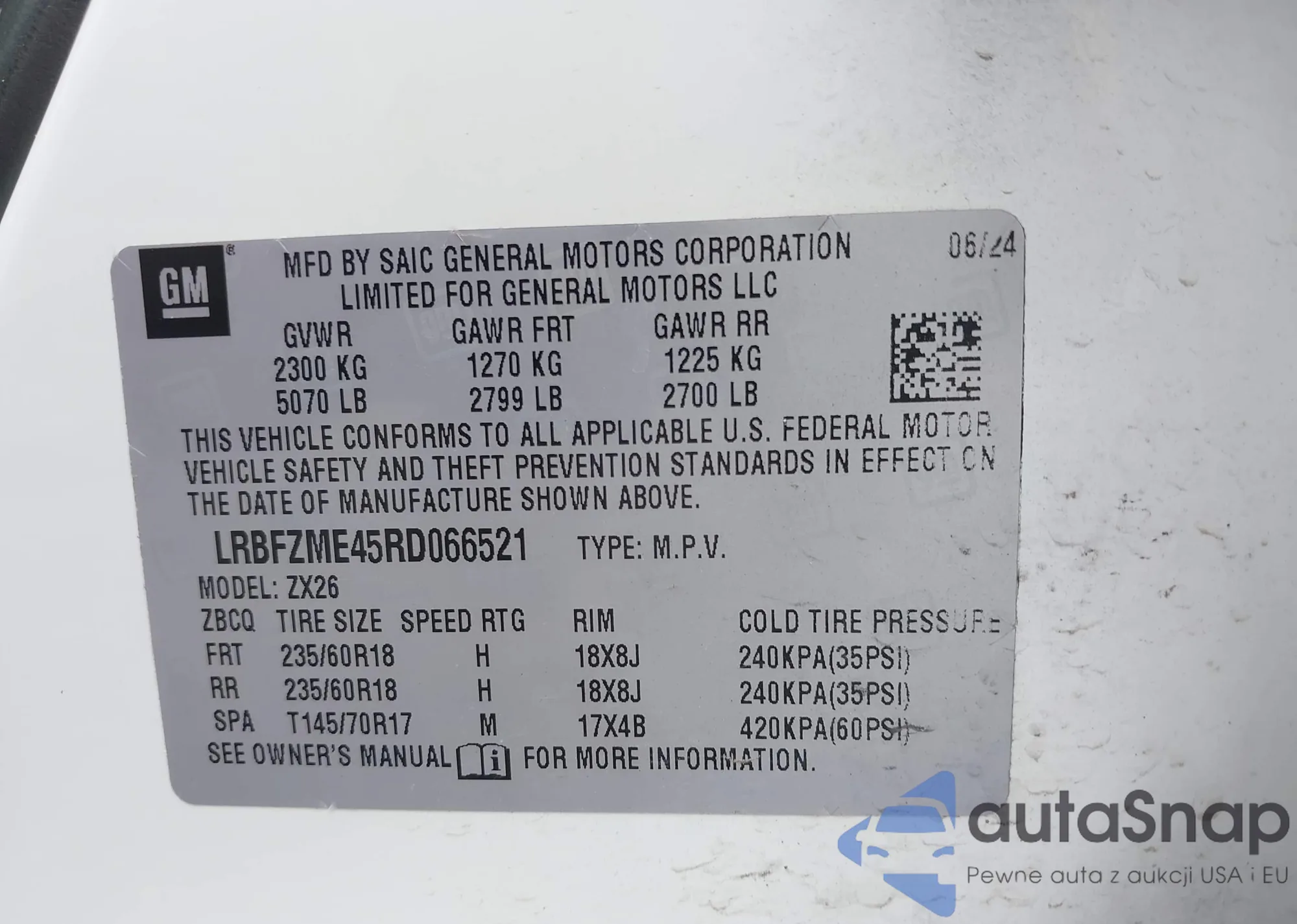 LOT: 42766339 VIN: LRBFZME45RD066521