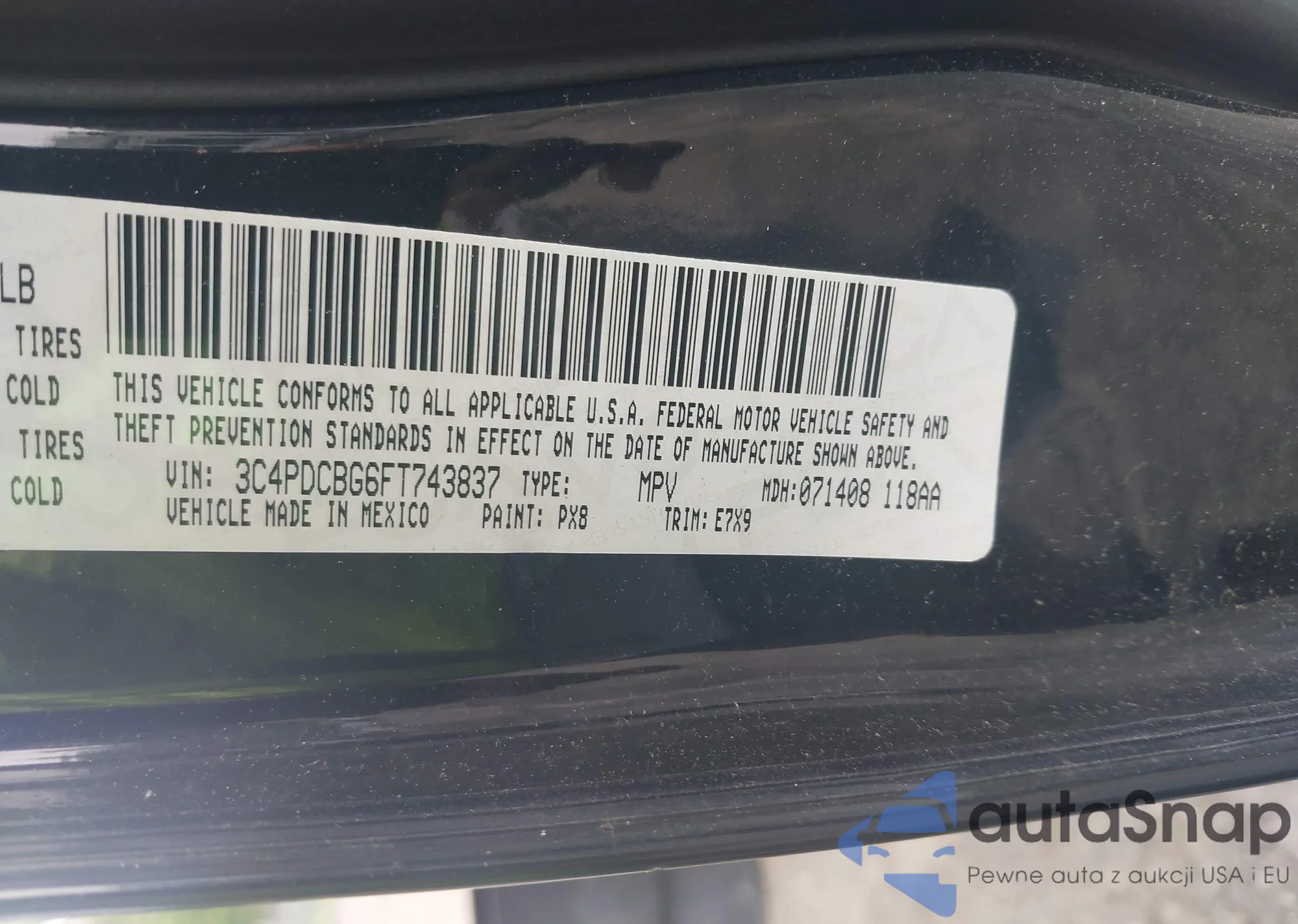 • VIN 3C4PDCBG6FT743837