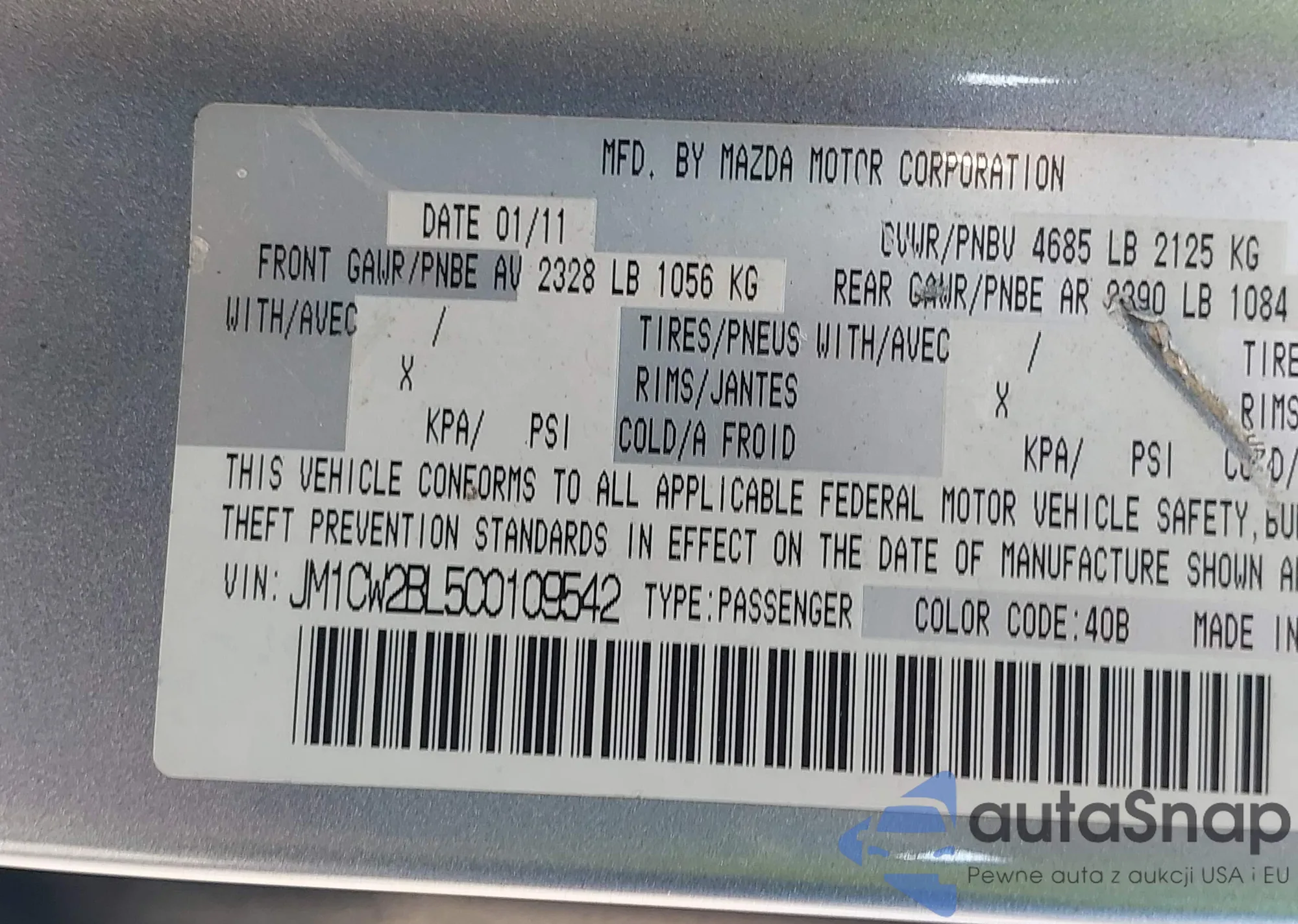 LOT: 42494218 VIN: JM1CW2BL5C0109542