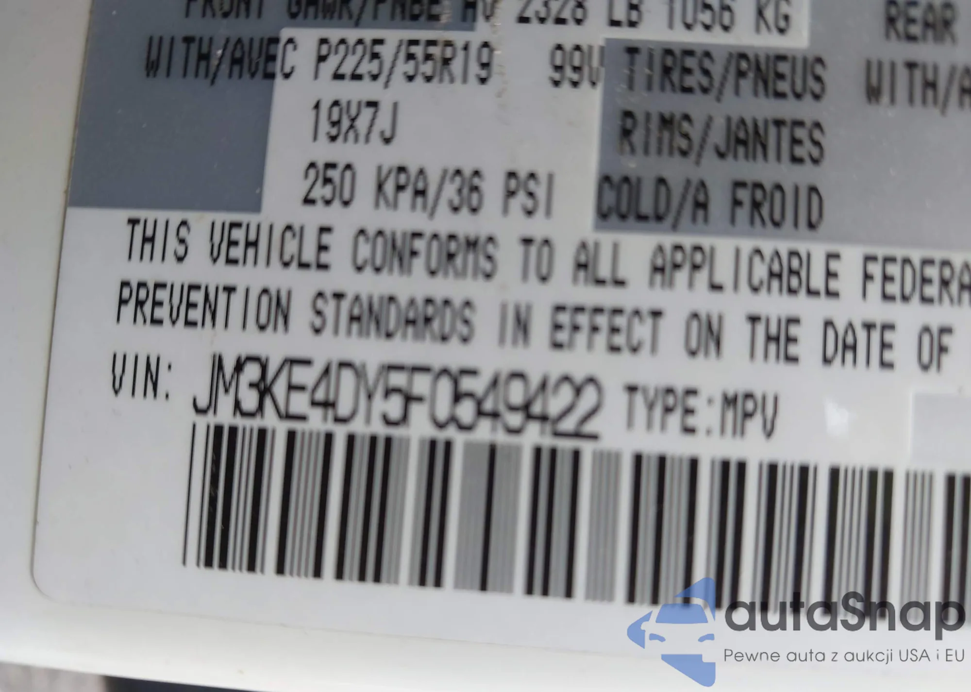 LOT: 42785044 VIN: JM3KE4DY5F0549422