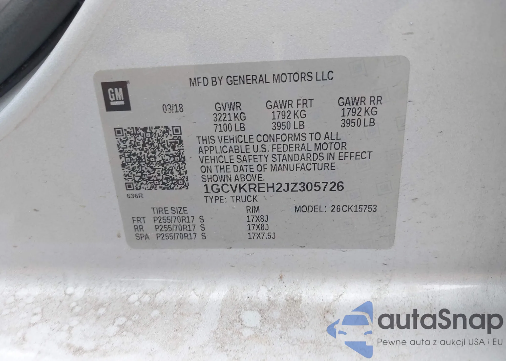 LOT: 42535469 VIN: 1GCVKREH2JZ305726