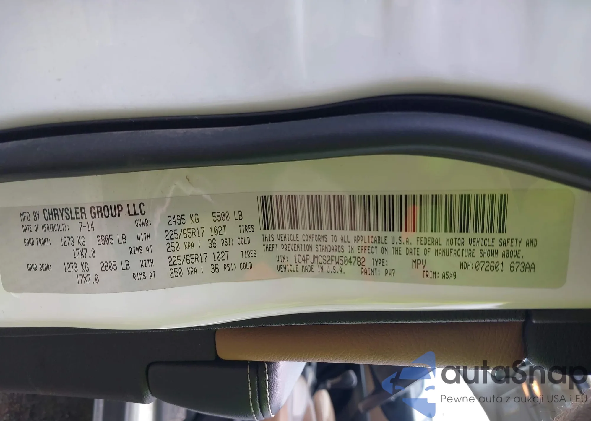 LOT: 42699995 VIN: 1C4PJMCS2FW504782