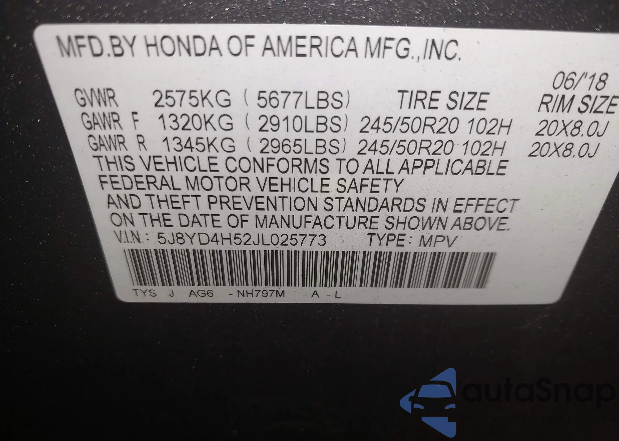 LOT: 42814647 VIN: KNDMB5C11H6308493