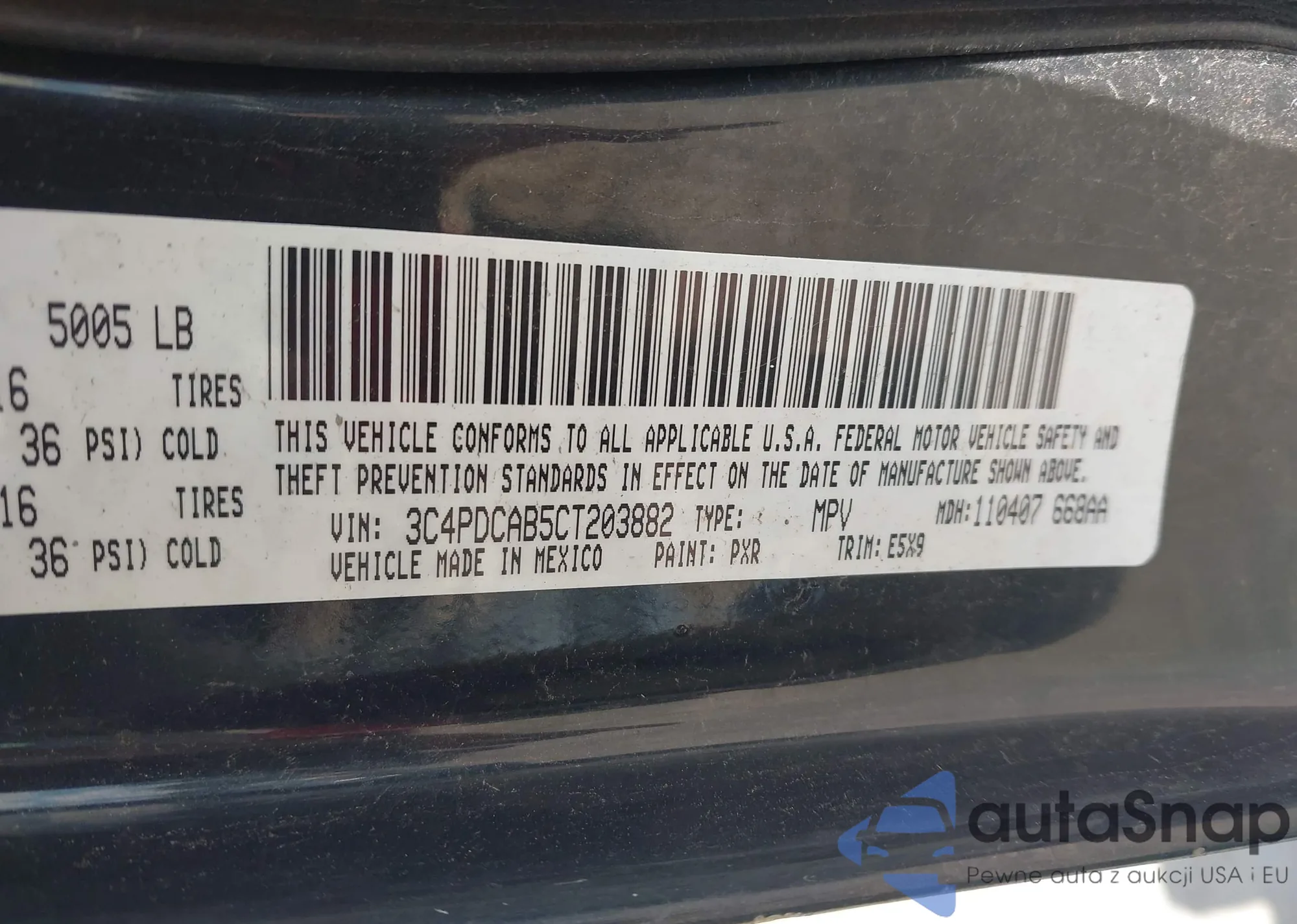 • VIN JTDJT4K39B5336262